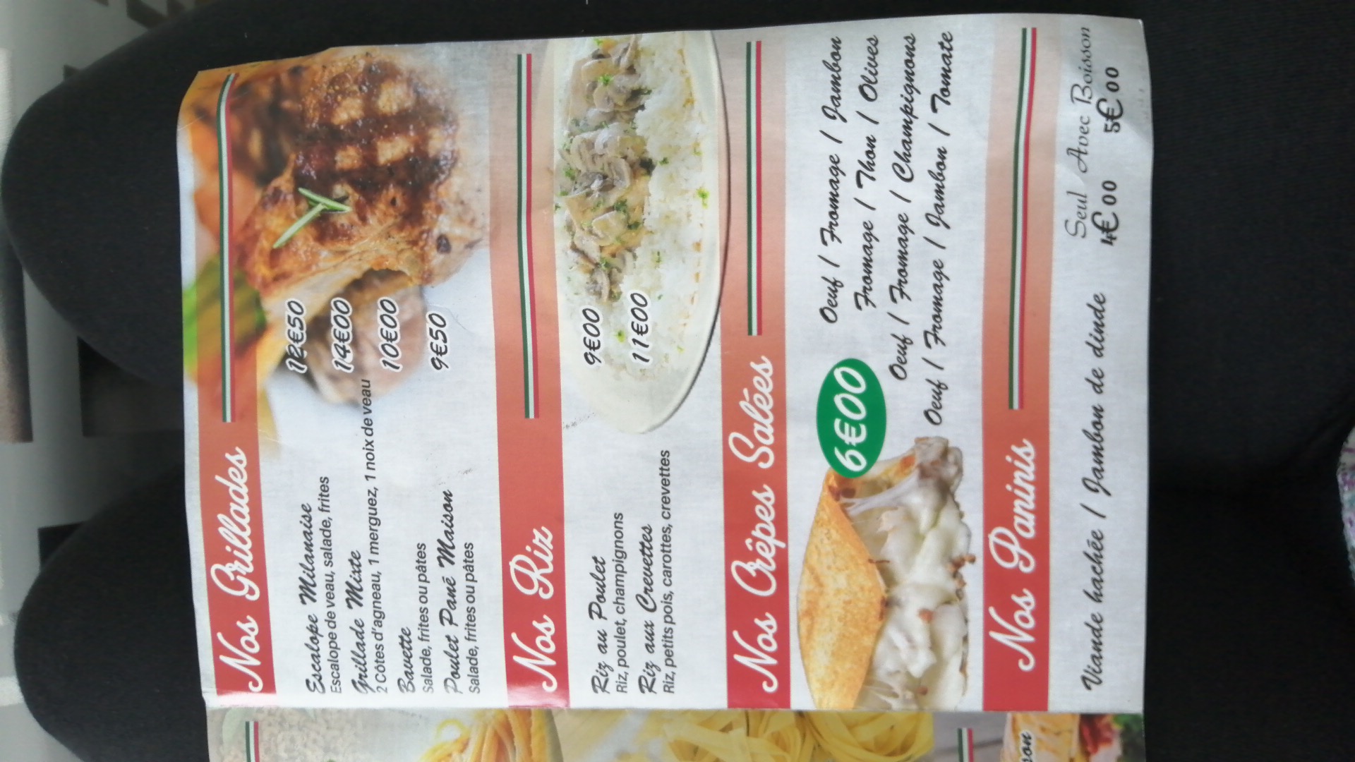 L'escalope de dinde pas du tout cuite , infecte la crème trop liquide et aucun assaisonnement il nous ont fournis des pot pour salez il y avais un trou dedans. Je ne vous conseille pas de manger la dedans. 8,50€ le plat et 1,50 la canette. Sinon bonne accueil.
