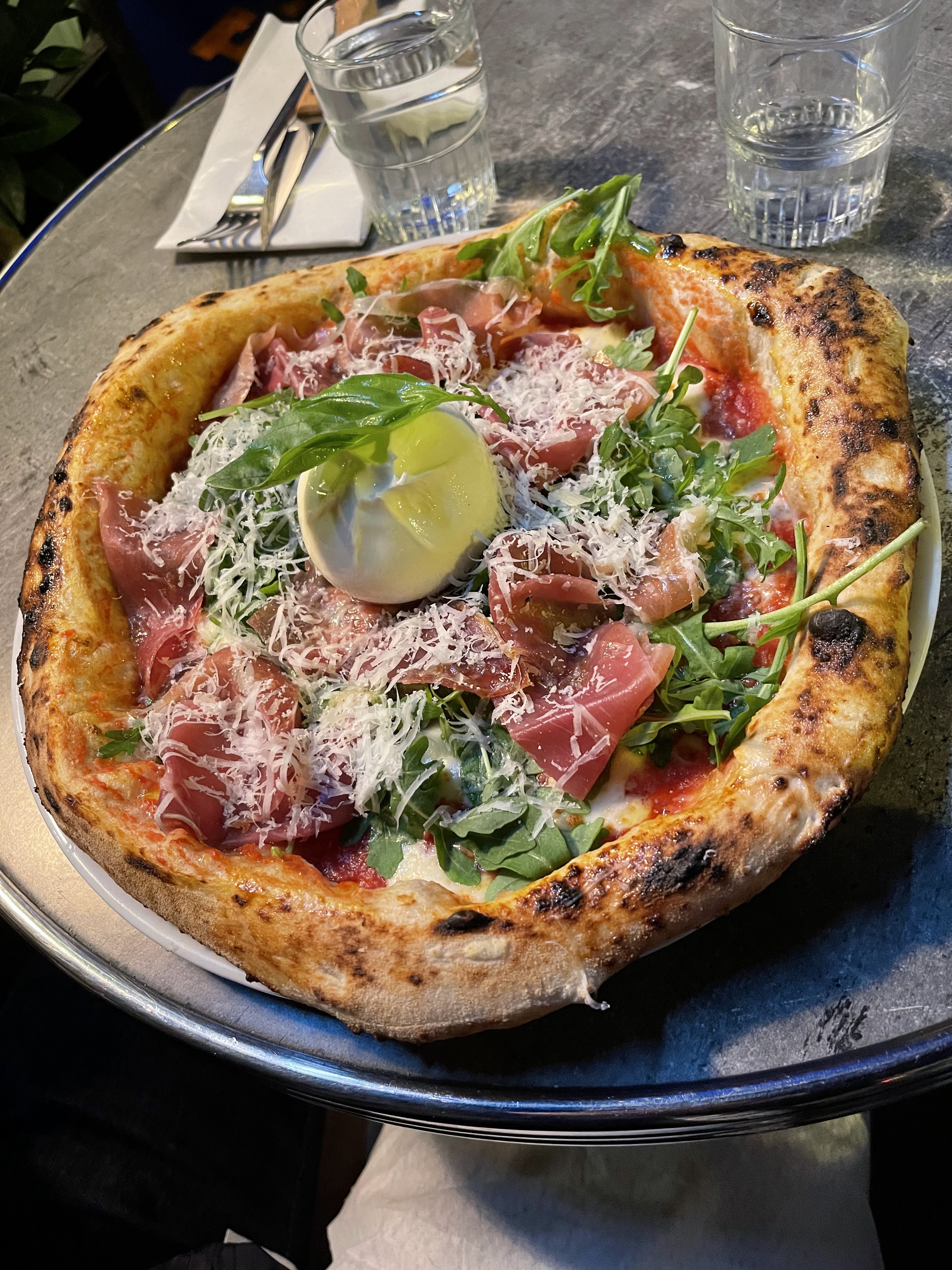 Pizza un peu brûlée mais bonne. Le service était super (merci Nicky). Peu de tables à l’intérieur.