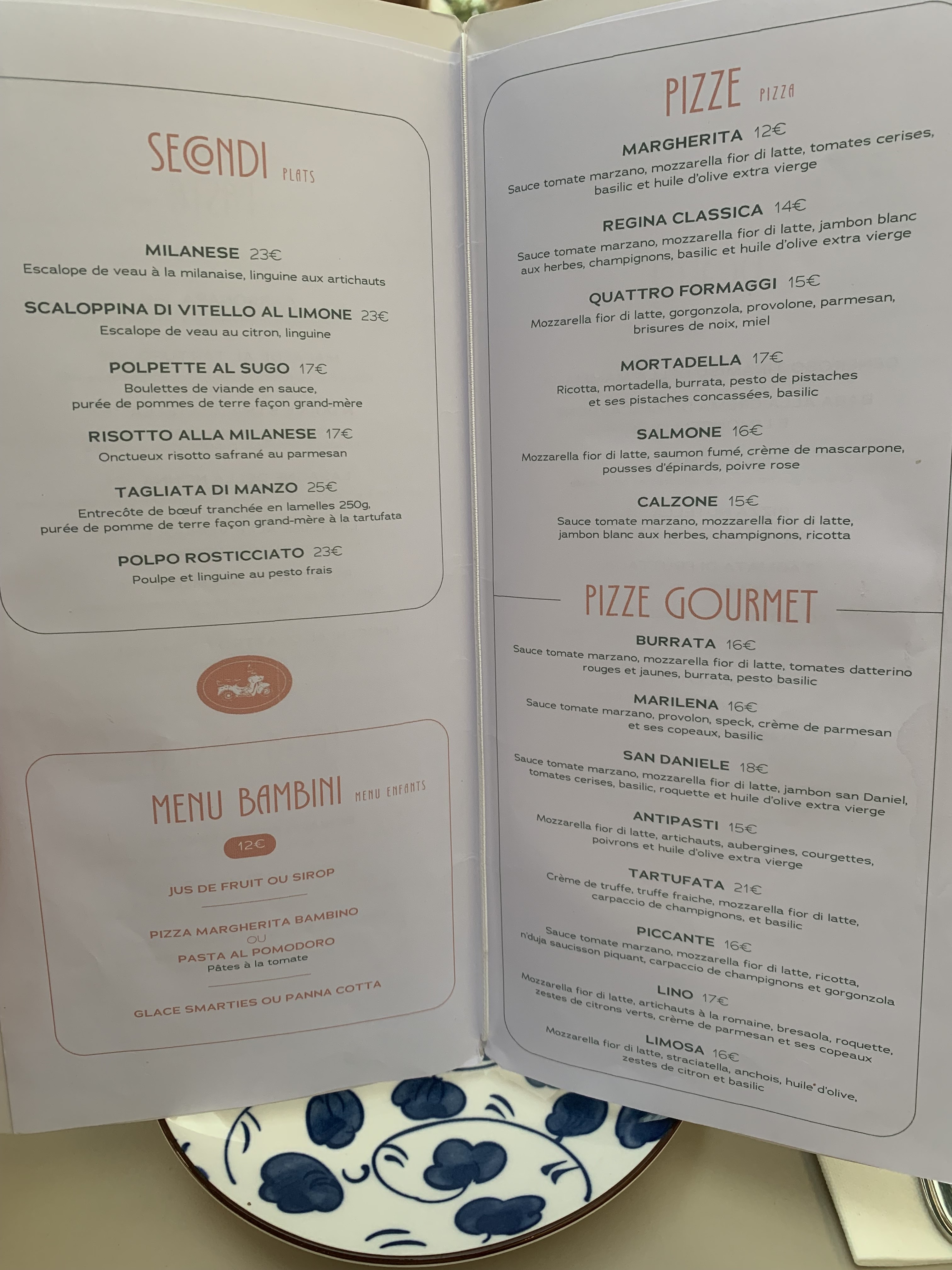 Un très joli cadre pour ce restaurant italien absolument parfait ! L’ambiance, la disposition des tables qui permet une intimité, le service super efficace et souriant, et des plats vraiment très bons. Nous avons passé une très bonne soirée en famille et je recommande vraiment !
