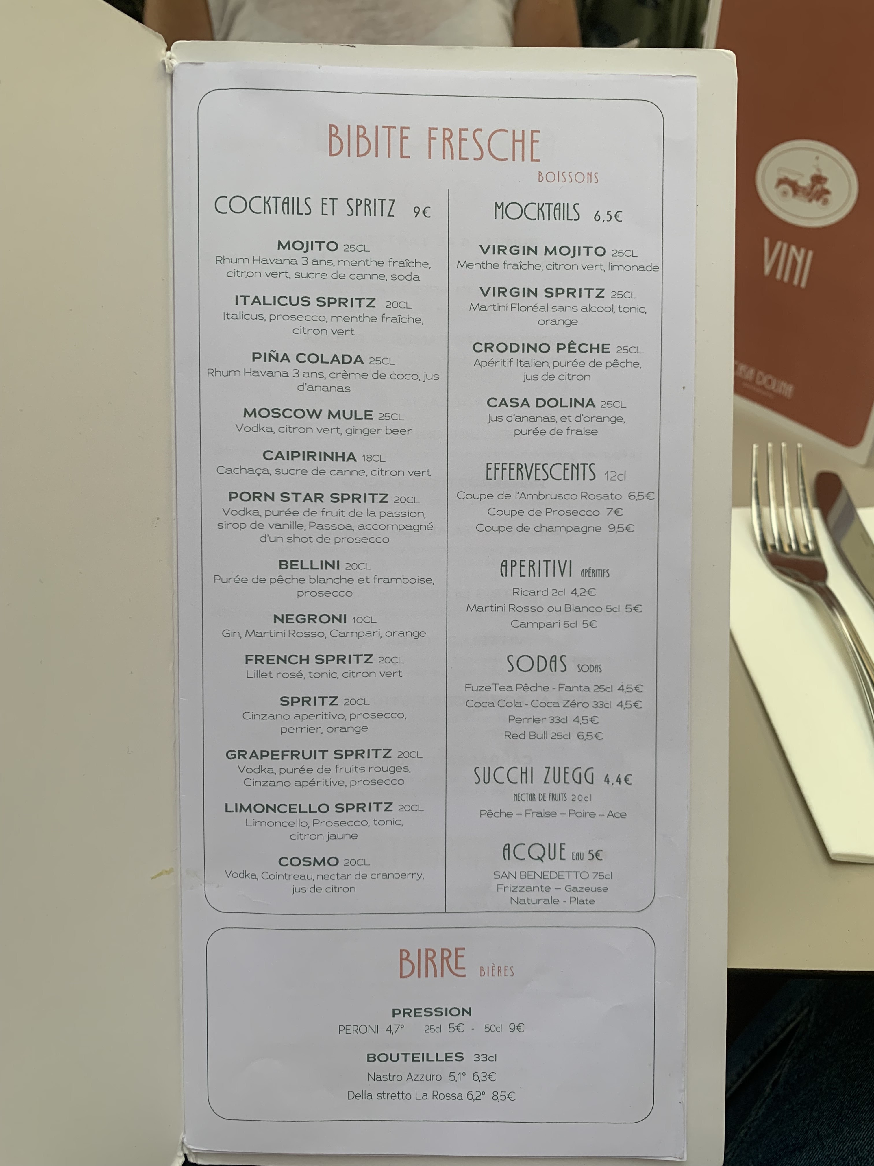 - ✔️ Cocktails et apéritifs