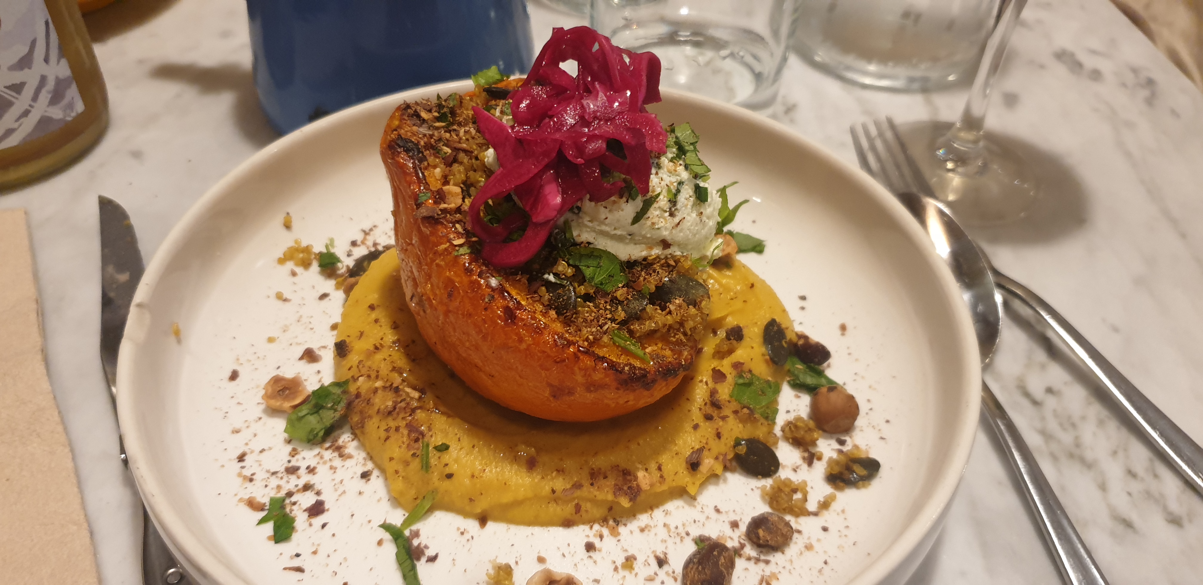 Bonne surprise ! Nous avons fait le choix de partager plusieurs entrées ou tapas, je ne pensais pas apprécier le caviar de betterave puisque je ne suis généralement pas fan de ce légume mais c'était finalement très bon ! Seul défaut les portions sont petites. Personnel très sympa et superbe décoration !