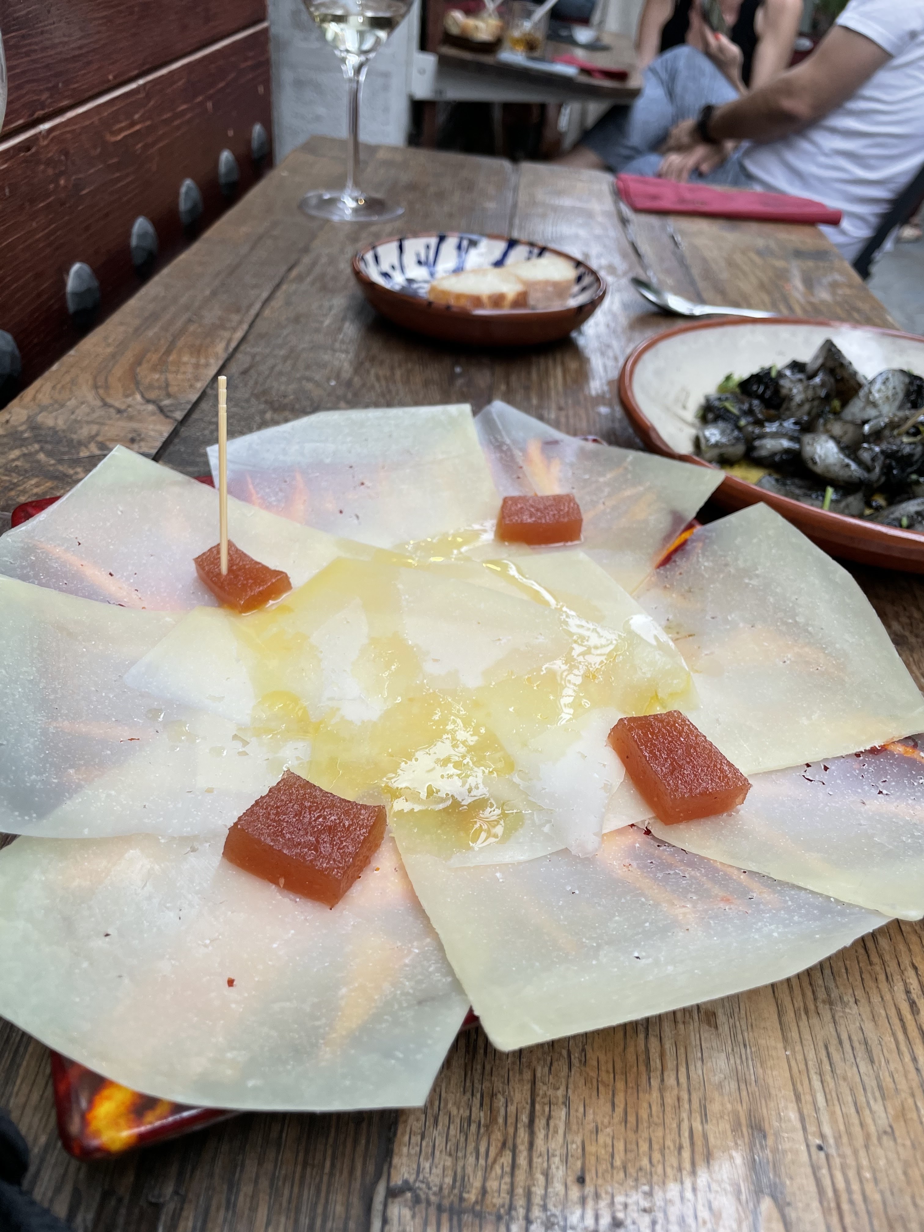 Les tapas sont excellentes, la sangría blanche est top! Les tapas du jour étaient des moules au gingembre et lait de coco une vraie tuerie! Les croquettes sont à tomber et ressemblent énormément à celles que j'ai pu manger à Madrid. Je recommande ce petit resto de tapas plein de charme et hyper bon!