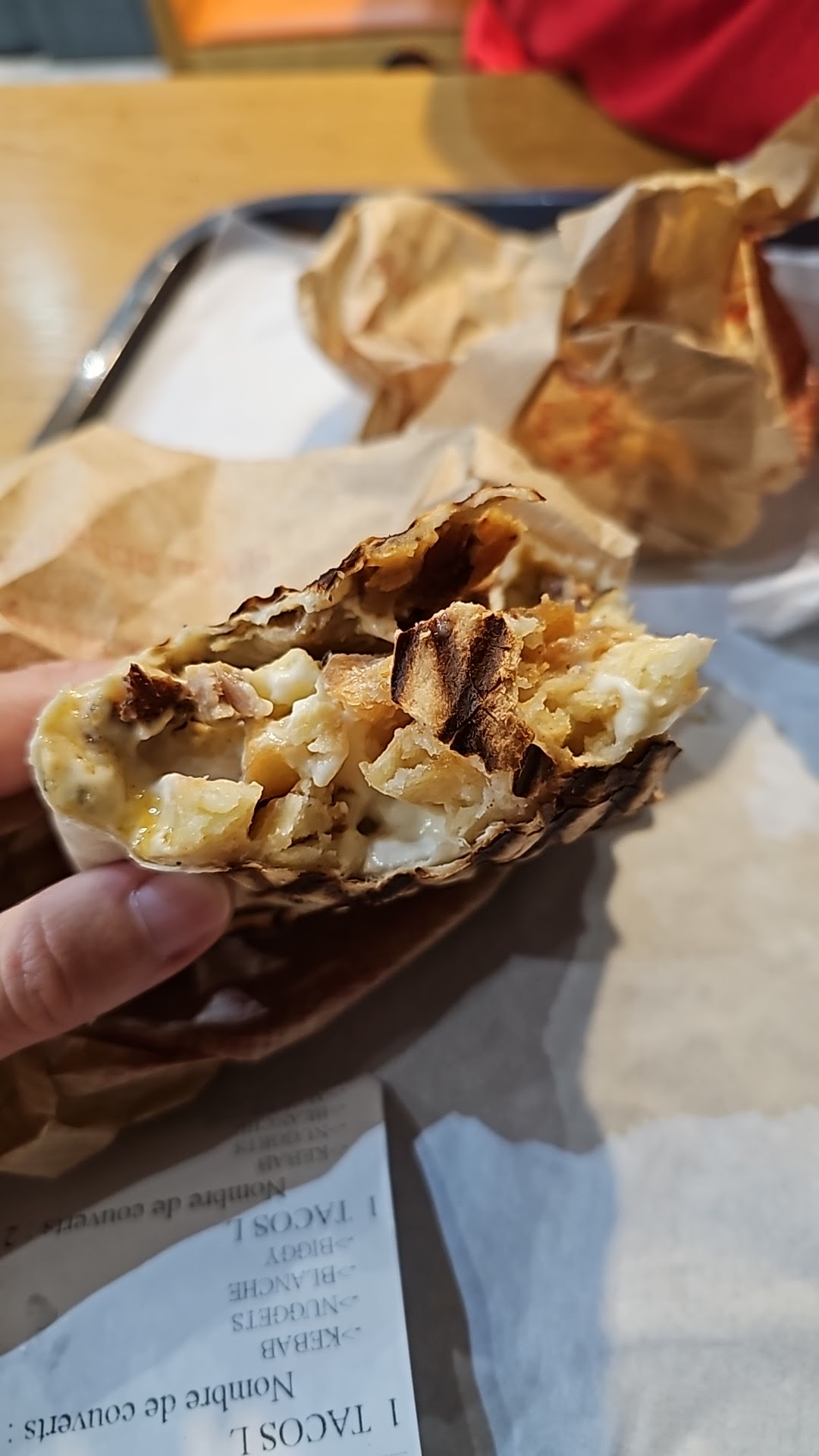 J'ai demandé une tortilla fondante Franchement très déçu Rempli que avec des frites Je pense qu'ils ont mis une cuillère de viande Pas du tout de fromage Ils remplit qu'avec de la sauce béchamel très déçu je recommande plus jamais.