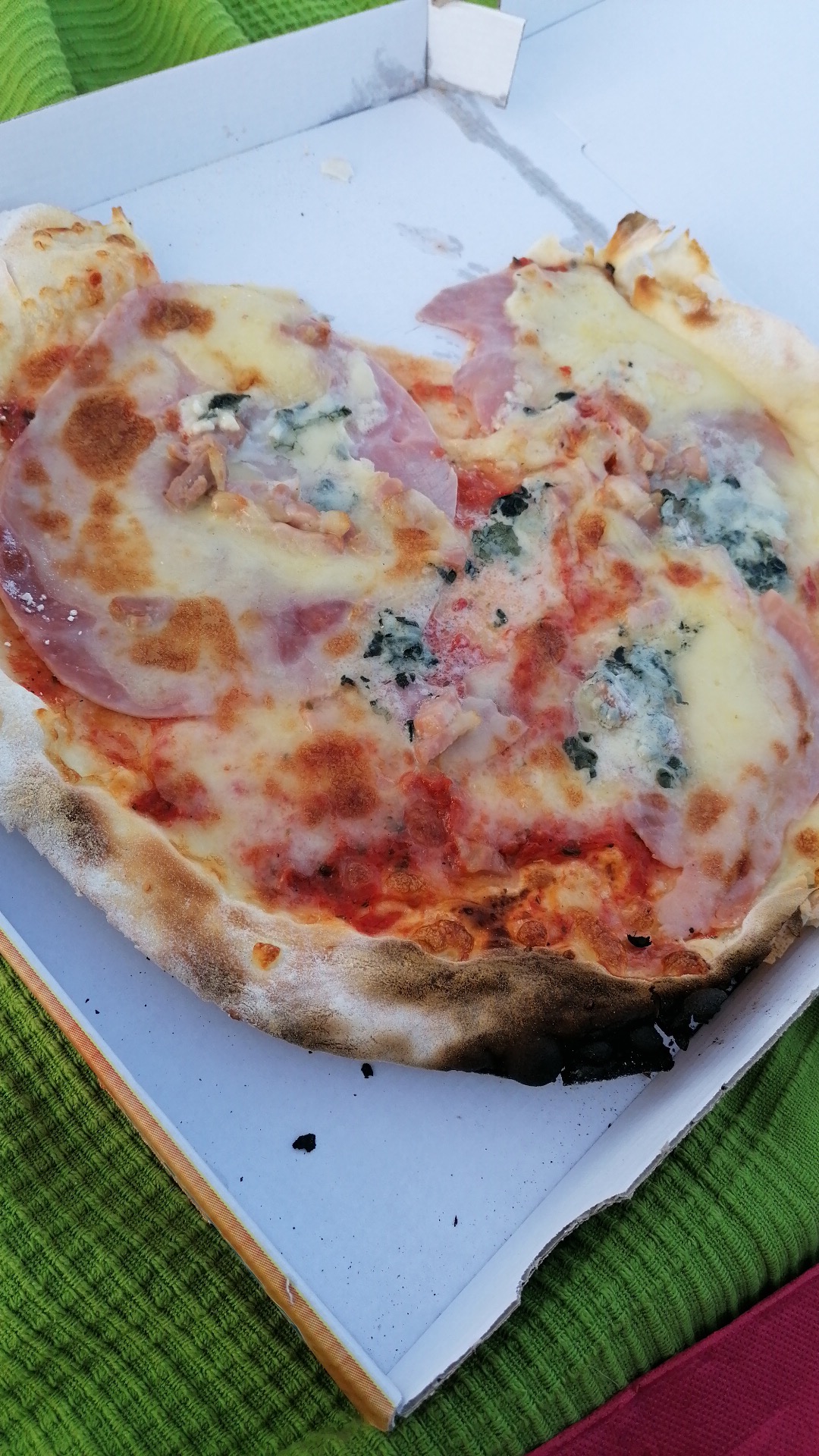 Une pâte à pizza aussi fine qu'une chips, complètement cramé . Des ingrédients à d'une qualité plus que médiocre. Je ne recomande vraiment pas les pizzas .