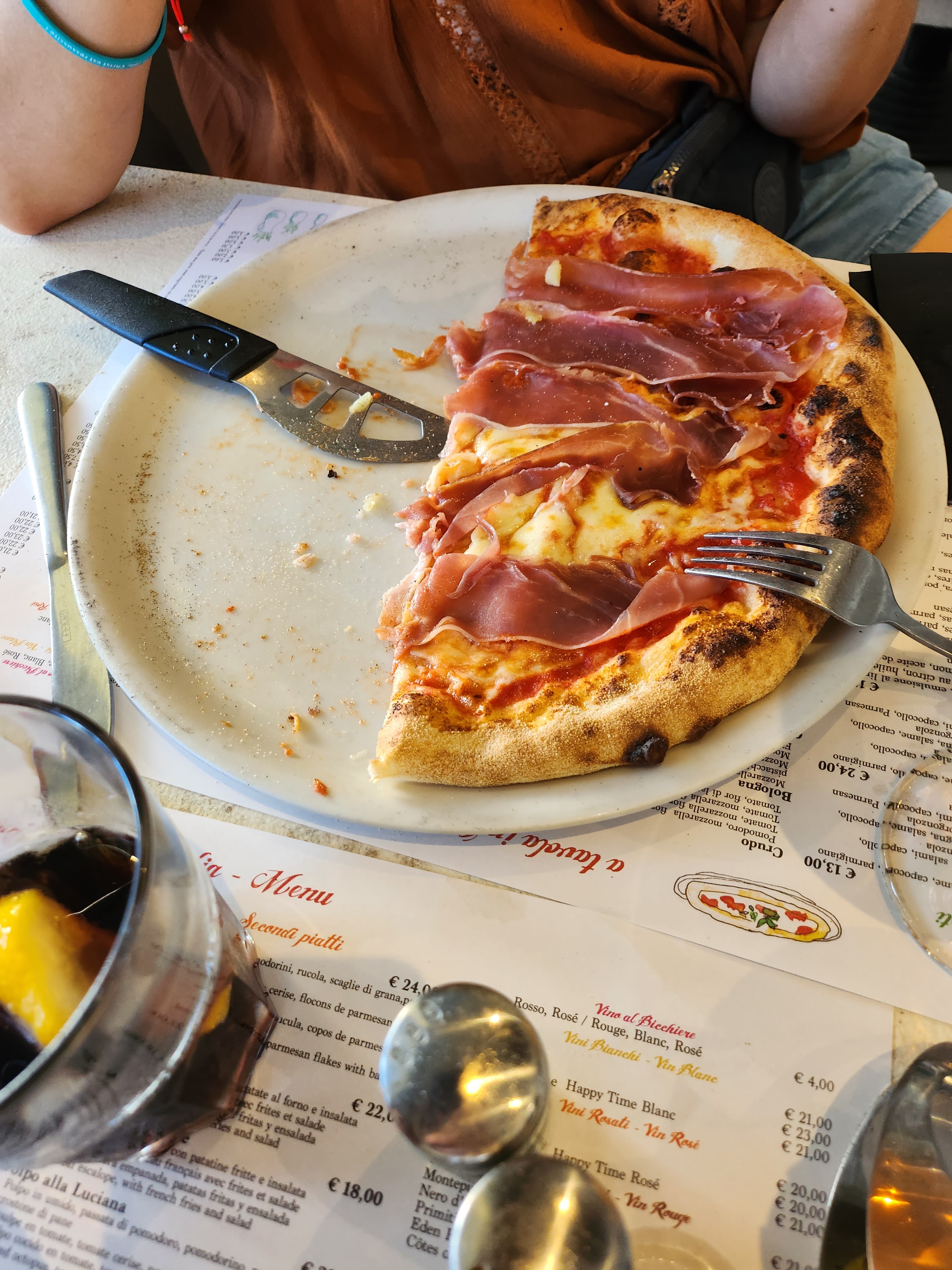 Un serveur qui ne prend même pas la peine de dire bonjour, aucun sens du service, le minimum du minimum. On ne peut même pas dire que le cadre était chouette : nous avons été installés dehors avec vue sur les toilettes publiques. Les règles sanitaires anti covid sont approximatives : une table installée à la hâte à moins d'un mètre de la notre... Les pizzas sont plus chères qu'ailleurs et sans grand intérêt en plus du fait qu'elles soient trop salées... Nous avons clairement regretté notre envie de cuisine italienne. Je déconseille !! Touristes fuyez !