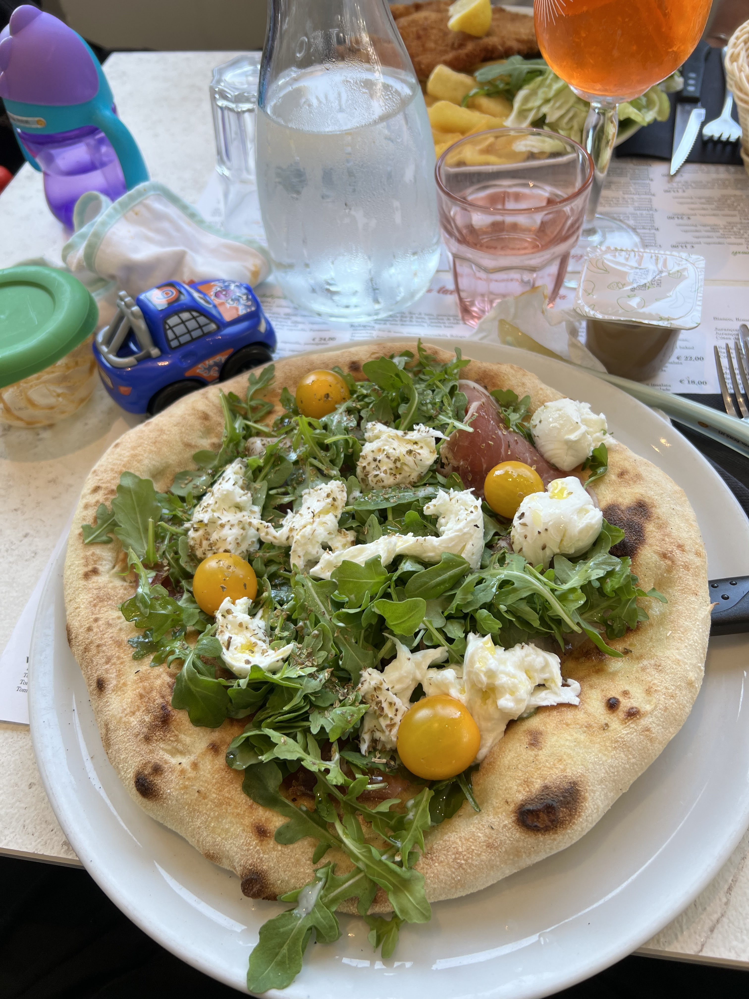 Éviter les gnocchi car ils sont trop moûts et la sauce tomate est mauvaise. L'escalope Milanaise était très sèche servie avec des frites et une salade sans vinaigrette. Par contre, les pizzas des tables autour avaient l'air bonnes.