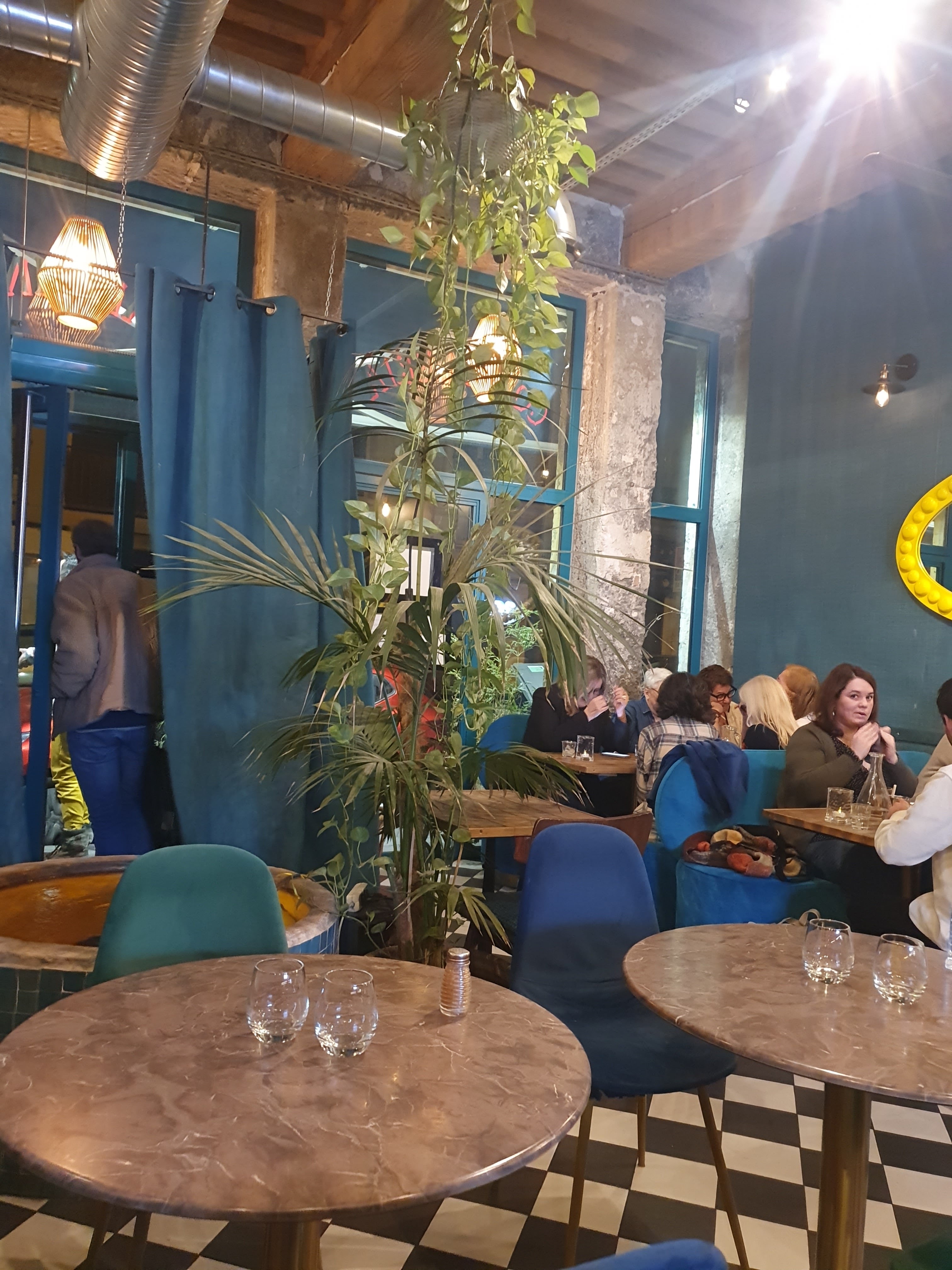 Bonne ambiance et le cadre est très sympa : beau et coloré. Les plats et cocktails sont très bons, mais tout de même chers.