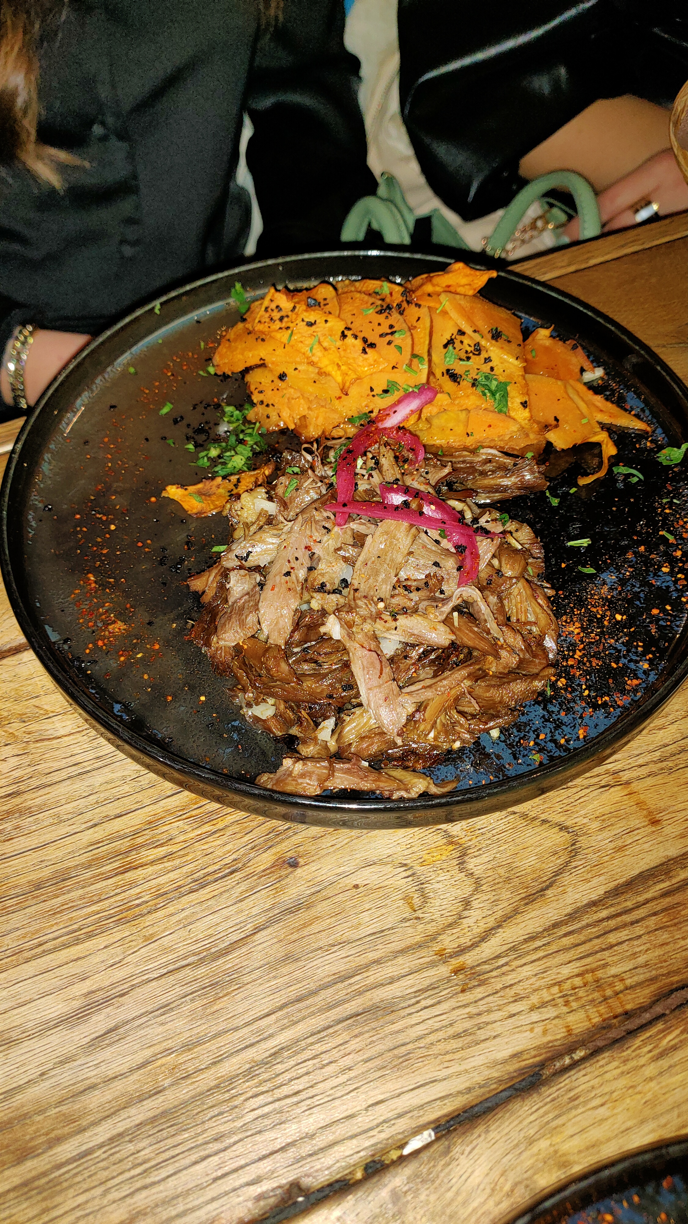 Service au top! Très bon mais ça fait cher l'assiette pour la quantité (seco de pato) après c'est le jeu de la cuisine.. gastronomique ? J'avais faim après Le chocolat al chile était succulent je recommande.