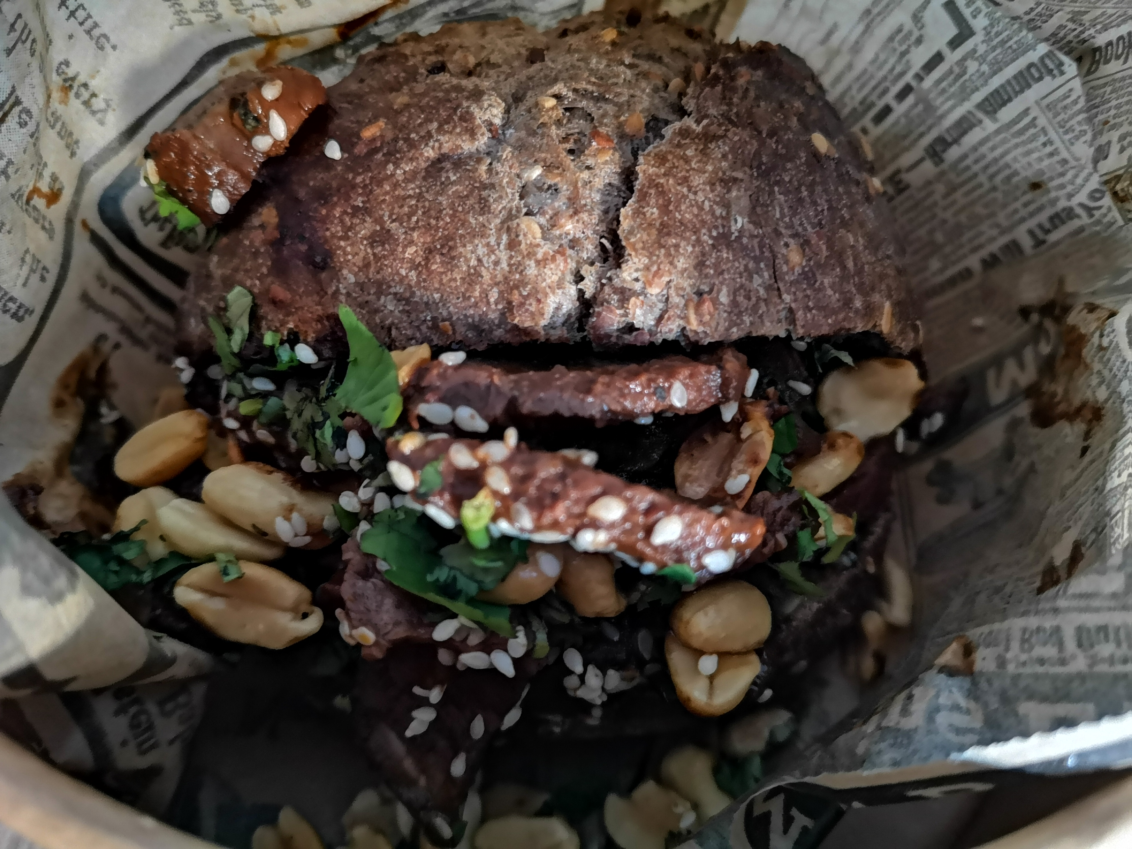 Ce soir, nous avions envie de voyager et de saveurs épicées. Nous avons donc opté pour 2 « combo pequeno »: « patatas bravas » : les pommes grenailles sont moelleuses en bouche et la chair légèrement sucrée contre balance parfaitement avec le lit de mayonnaise maison légèrement épicée. « pepito barbacoa » (burger à l'agneau confit) : L'agneau est divin, fondant et parfaitement assaisonné, chaque condiment à sa place et le pain aux céréales apporte du caractère. Un sans faute ! « guacamole et totopos » en entrée : Les totopos furent une grande découverte pour nous deux (ayant plutôt l'habitude des tortillas industrielles), ultra croquants, salés comme il faut, une pointe d'épice pour les plus téméraires, le tout trempé dans un guacamole maîtrisé avec de généreux morceaux d'avocats. « pépito magret al mole » (burger au magret de canard) : Le magret de canard était goûteux, parfaitement cuit. La coriandre, la sauce légèrement sucrée et les cacahuètes grillées apportaient comme une touche asiatique à ce « burger ». Un vrai délice... Vous l'aurez compris c'était parfait de A à Z, et pourquoi pas s'y rendre (à la réouverture) pour faire un épisode tout prochainement ;) Petit bonus, nous ne nous sommes pas fait livrés cette fois-ci, Ju est allé récupérer la commande et la personne qui l'a accueilli était très souriante et chaleureuse.