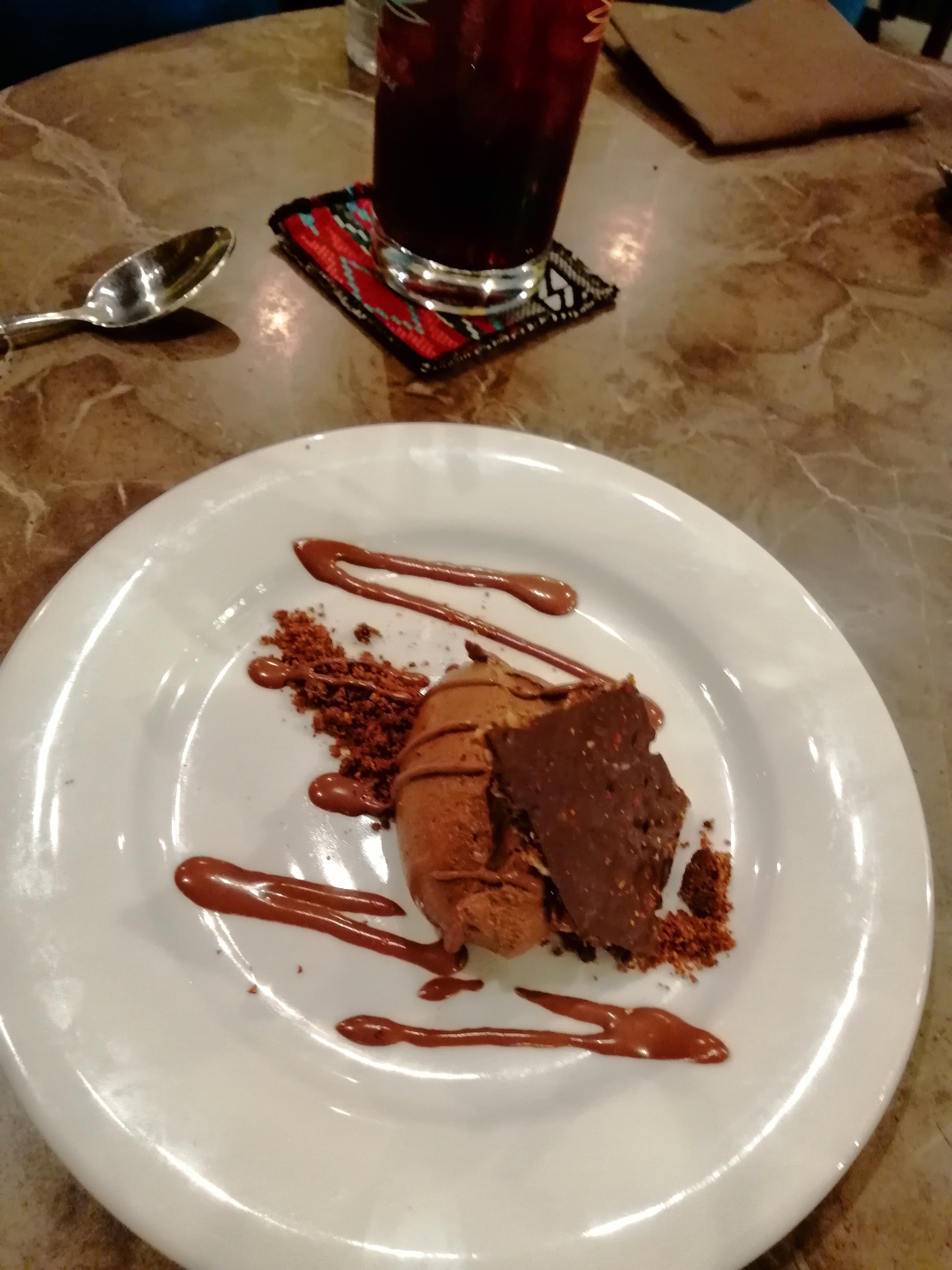 La décoration est sympathique. En revanche je pense avoir fait un mauvais choix en choisissant le tacos. Je n'ai pas pu manger les galettes de maïs tellement l'odeur et le goût sont fort.. le tacos perd du coup tout son sens. Quant au dessert je laisse la photo parler d'elle même.. pas mauvais au goût, mais trop sucré, et la présentation n'en parlons pas..