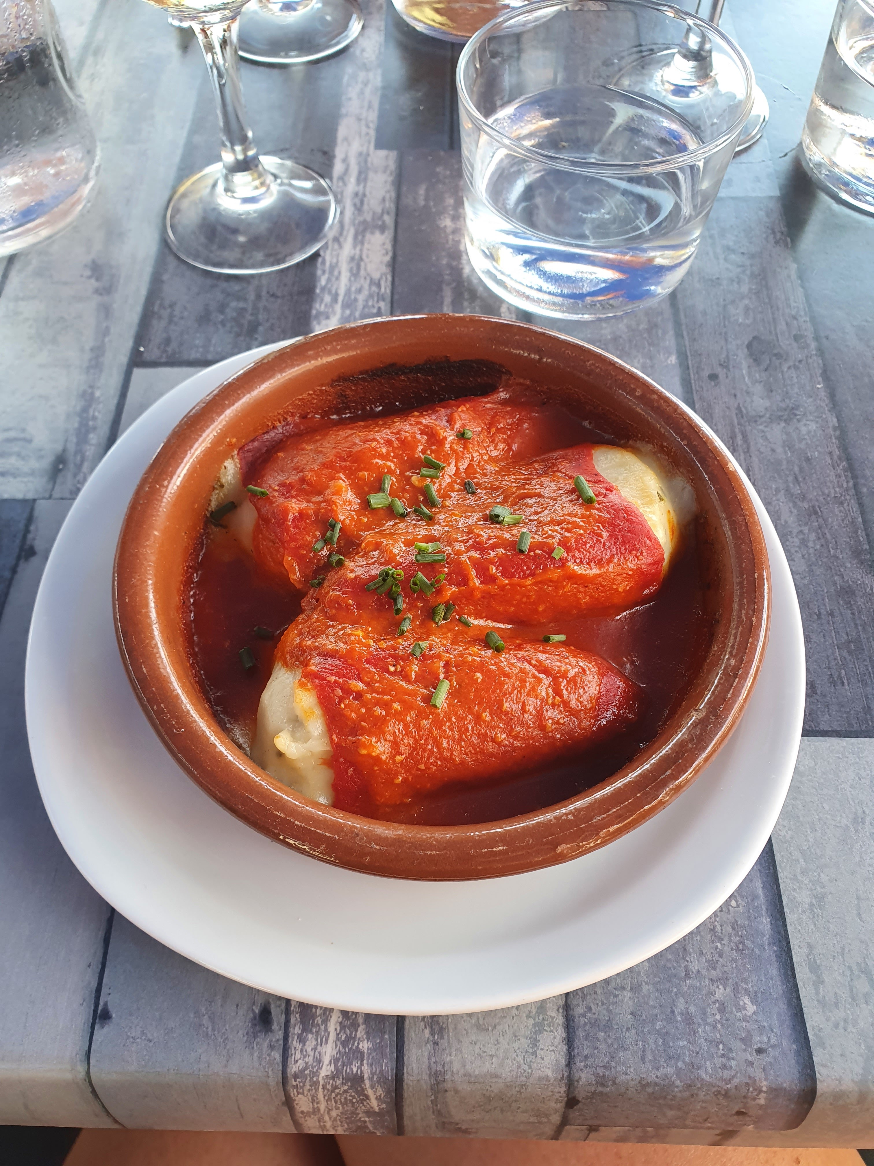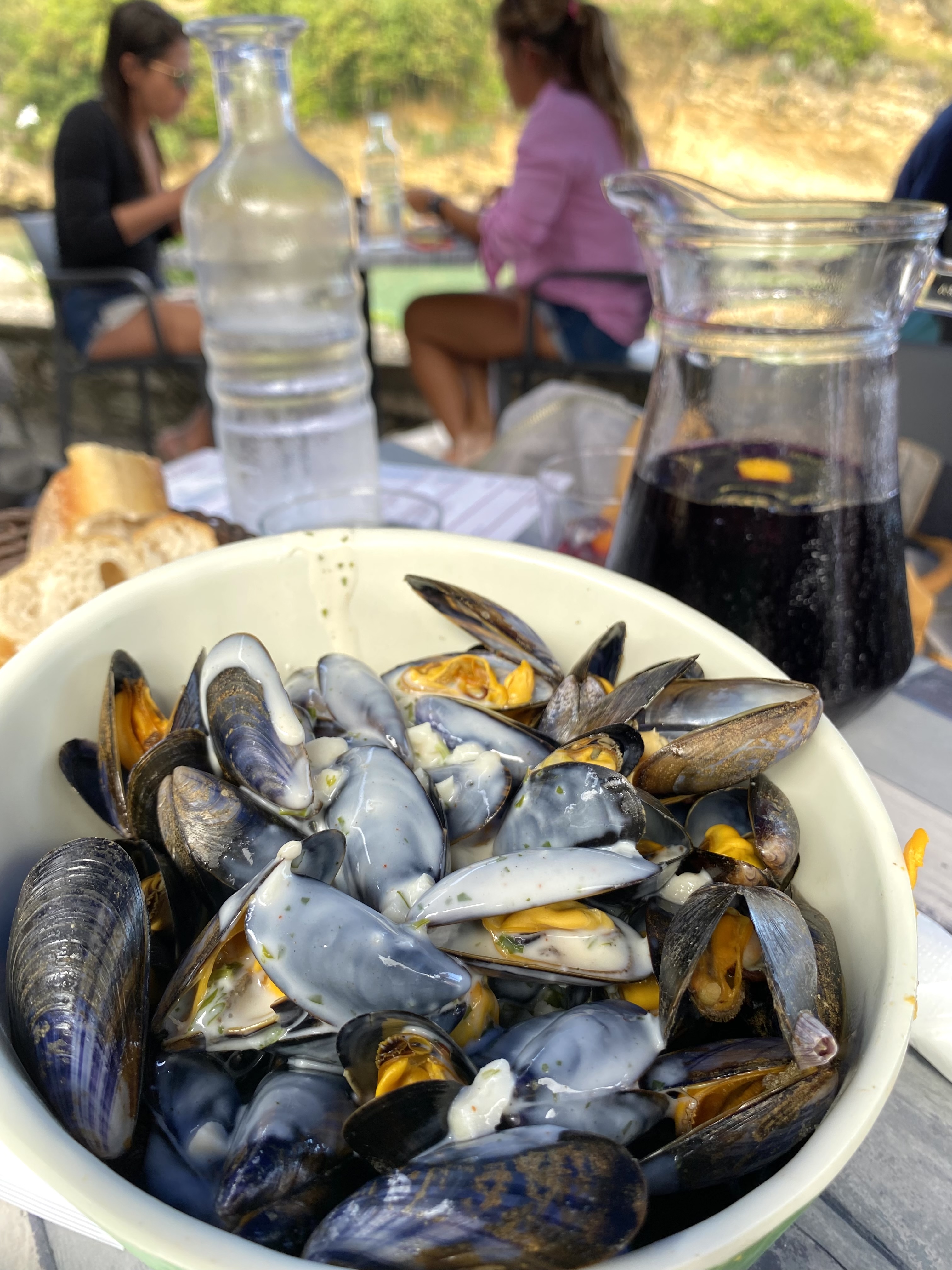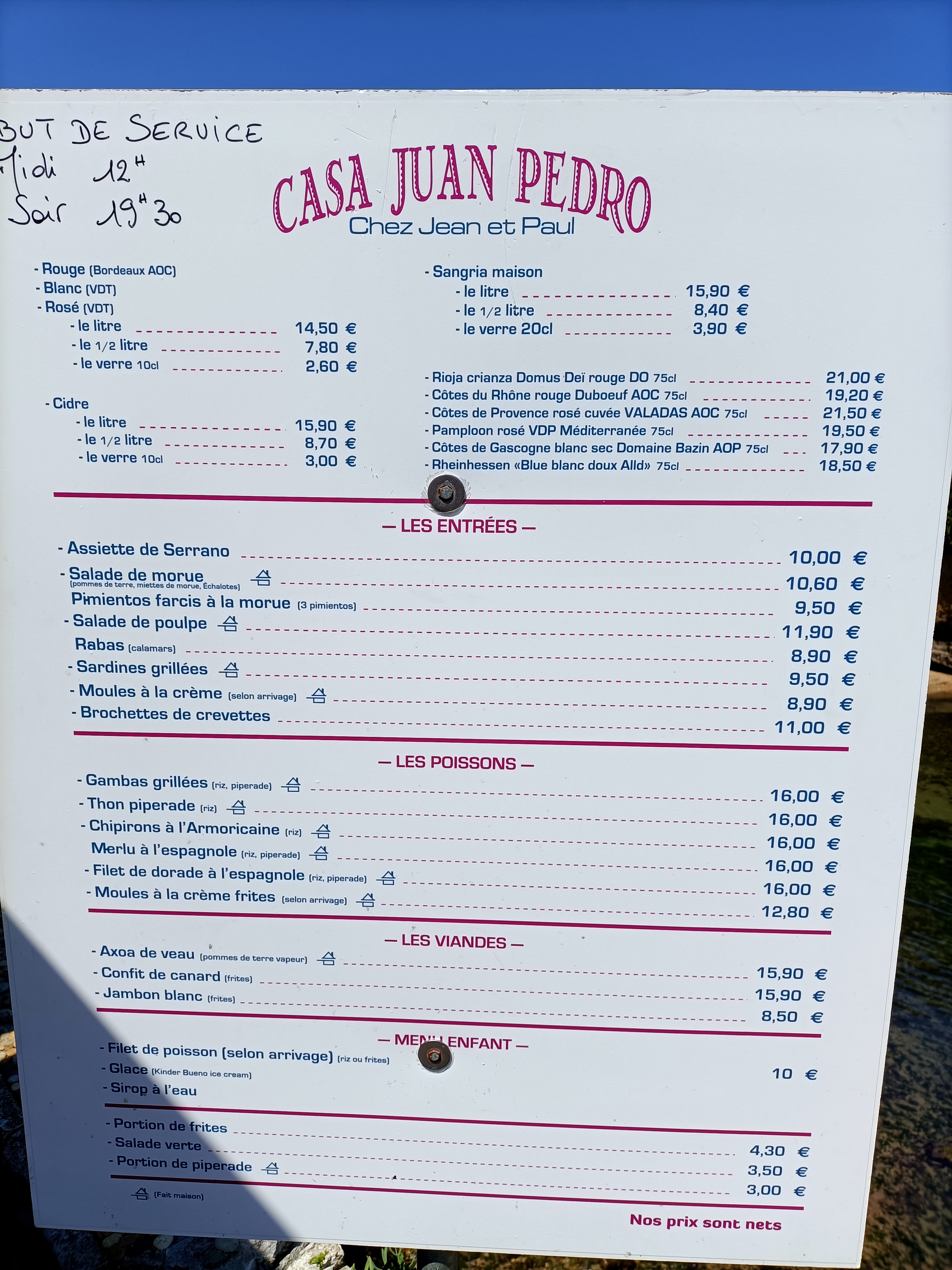 En pleine saison, il ne faut pas arriver tard derrière le panneau qui marque le début de la file d'attente : pas de réservation possible ! Le jeu en vaut la chandelle, les plats sont bons à base de produits frais ! Mon seul point noir lorsque j'interpelle un serveur pour demander du pain et qu'il ne s'arrête pas en me répondant assez sèchement c'est pas moi qui m'occupe de vous... assez moyen ! Ce qui fait que je ne mets pas la 5e étoile ! J'en reviens à mon assiette de sardines 😍. Nous finirons par une assiette de fromage de brebis accompagnée de confiture de cerises... puis l'addition qui n'a rien d'exorbitante 😊
