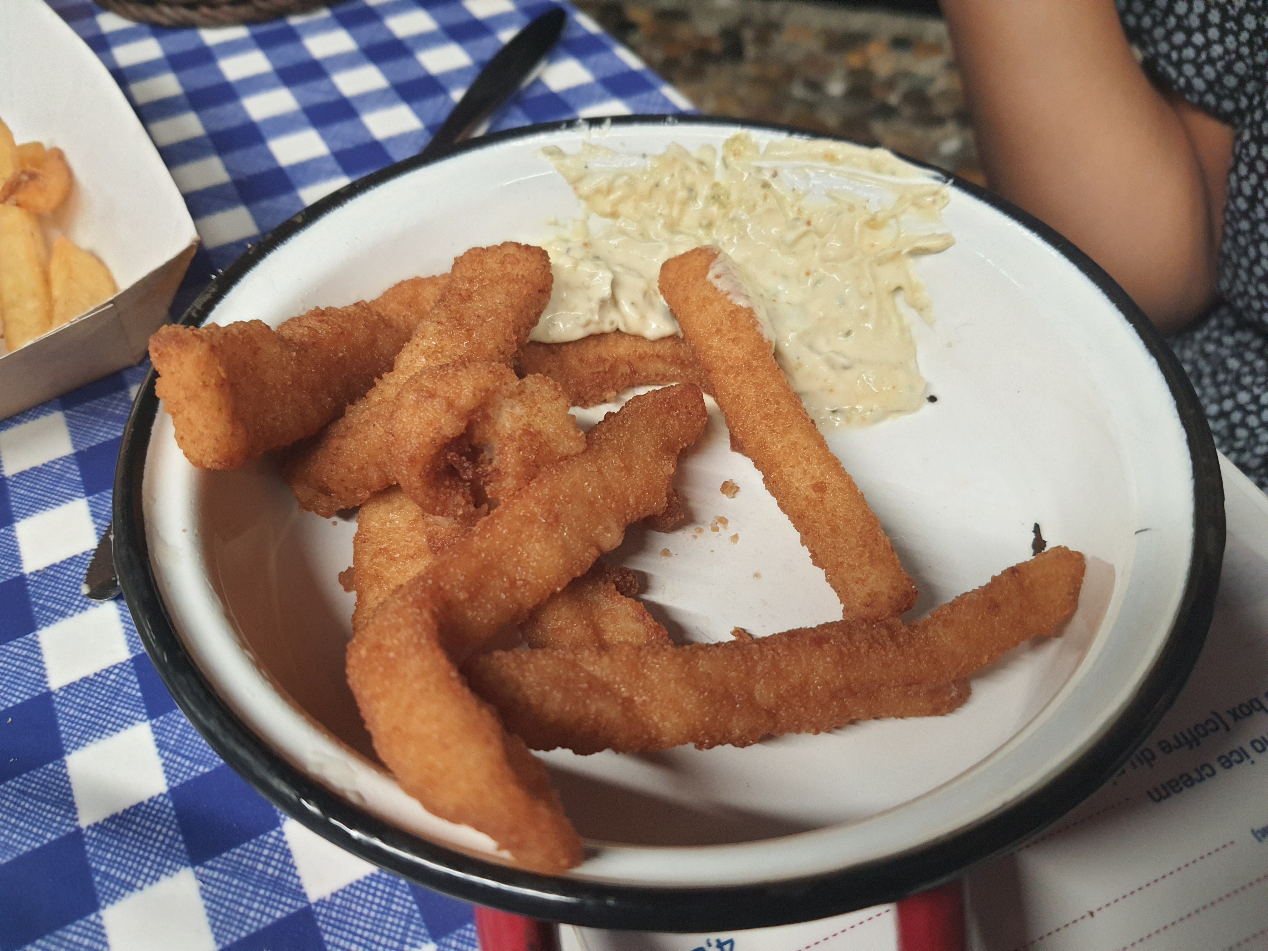 Arrivés peu après 19h, la terrasse juste au bord du quai était pleine (si vous tenez à manger au bord de l'eau, réservez ou venez plus tôt). La terrasse accolée au resto était tout aussi bien. Les poissons étaient bons mais les parts un peu trop légères (cf. les chipirons en photo). Toutefois, on sentait la qualité et la fraîcheur des produits. La sangria était bien comme il faut.