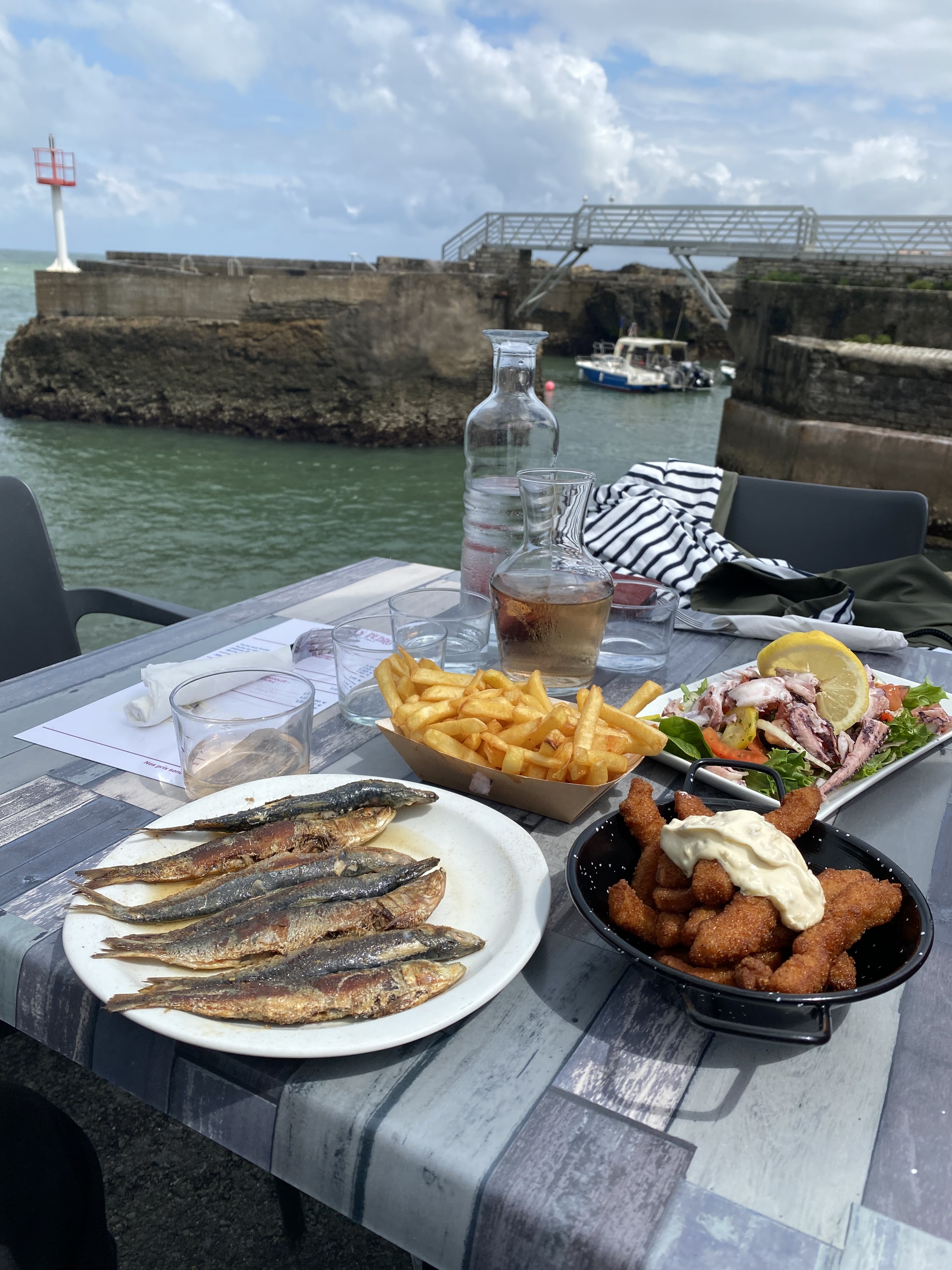 Un délice de sardines et gambas avec vue sur le petit port de Biarritz une très belle adresse !!