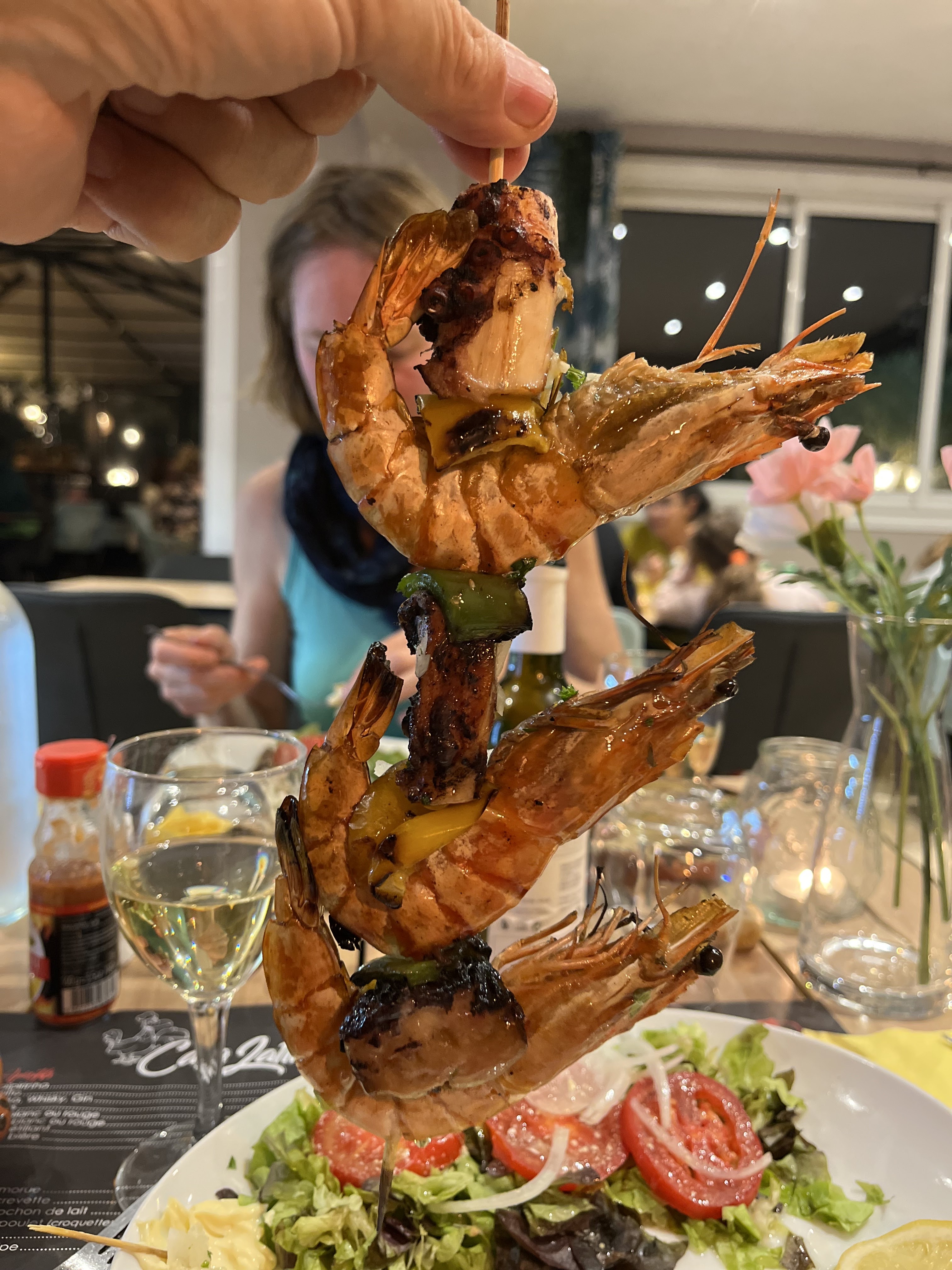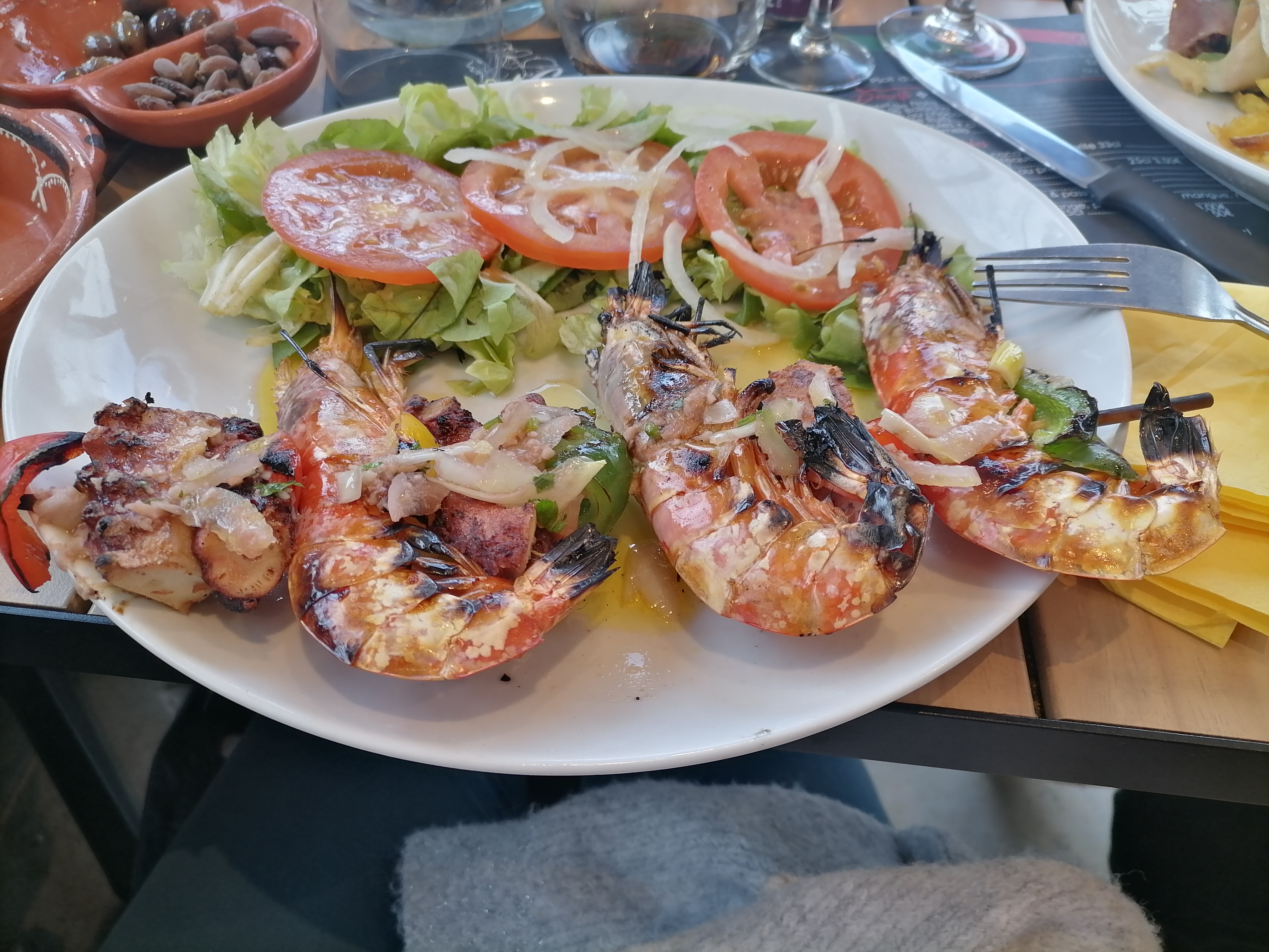 Des gens vraiment sympas mais la nourriture pourrait sûrement être bien meilleure. Les boissons ne sont pas chères. Donc. L’image concerne la brochette de gamba’s & poulpe à 24 €.