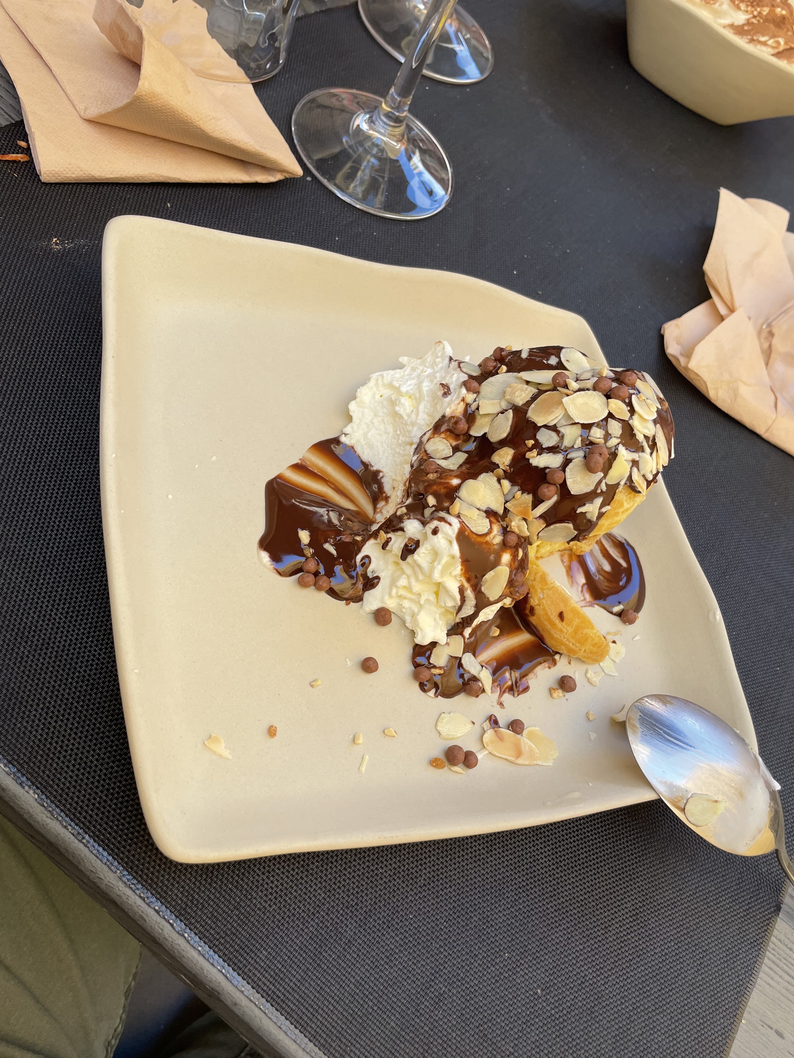 Repas pris ce midi, accueil chaleureux et service au top ! Ce qui est déjà un très bon point. Ensuite la parillade de poisson était juste délicieuse, cuisson des poissons au top, fin et copieux. Le dessert, une profiterole maison (voir photo) chantilly, chocolat, je me suis régalé. Je recommande, bravo au chef et merci pour le service !