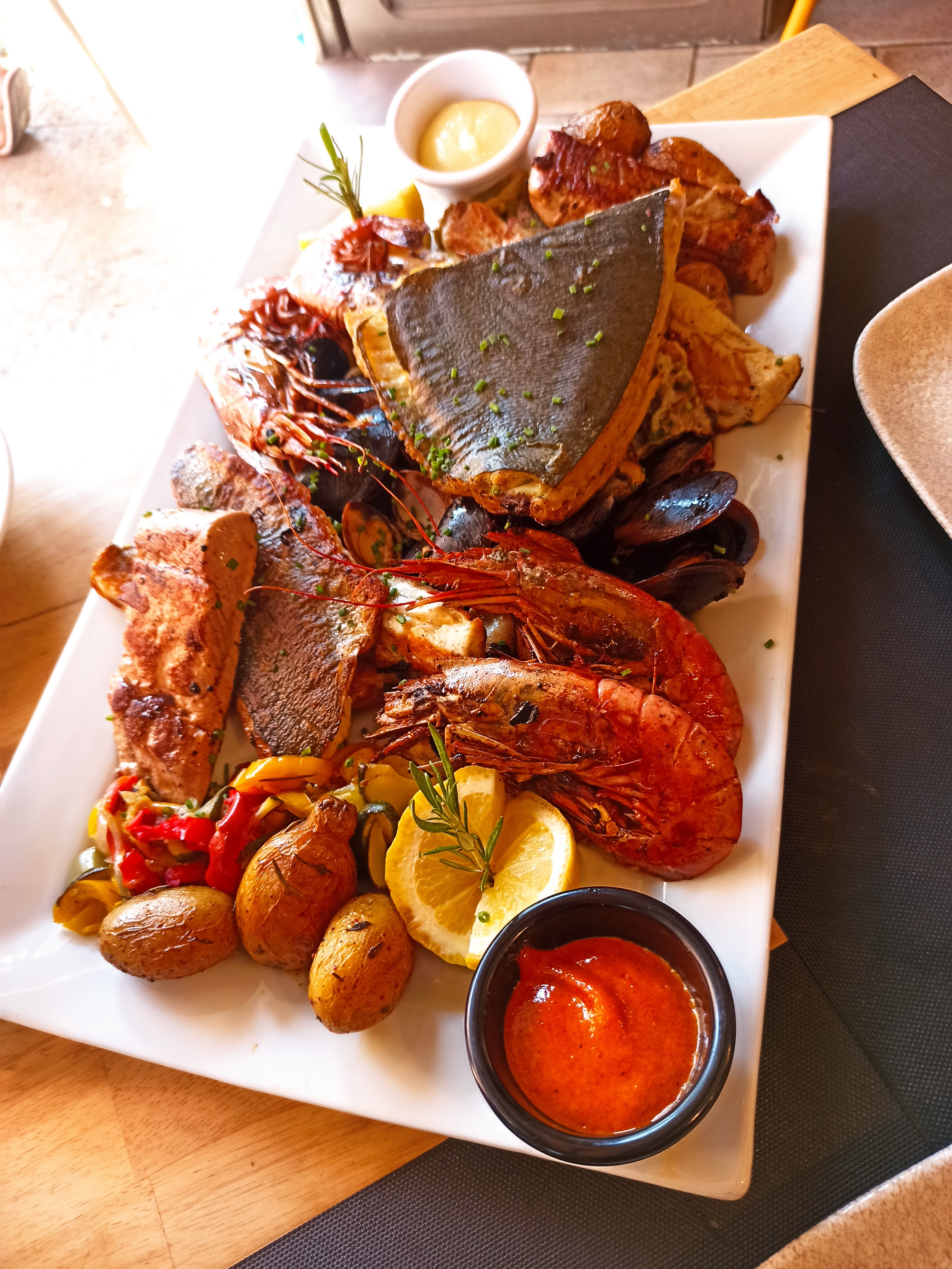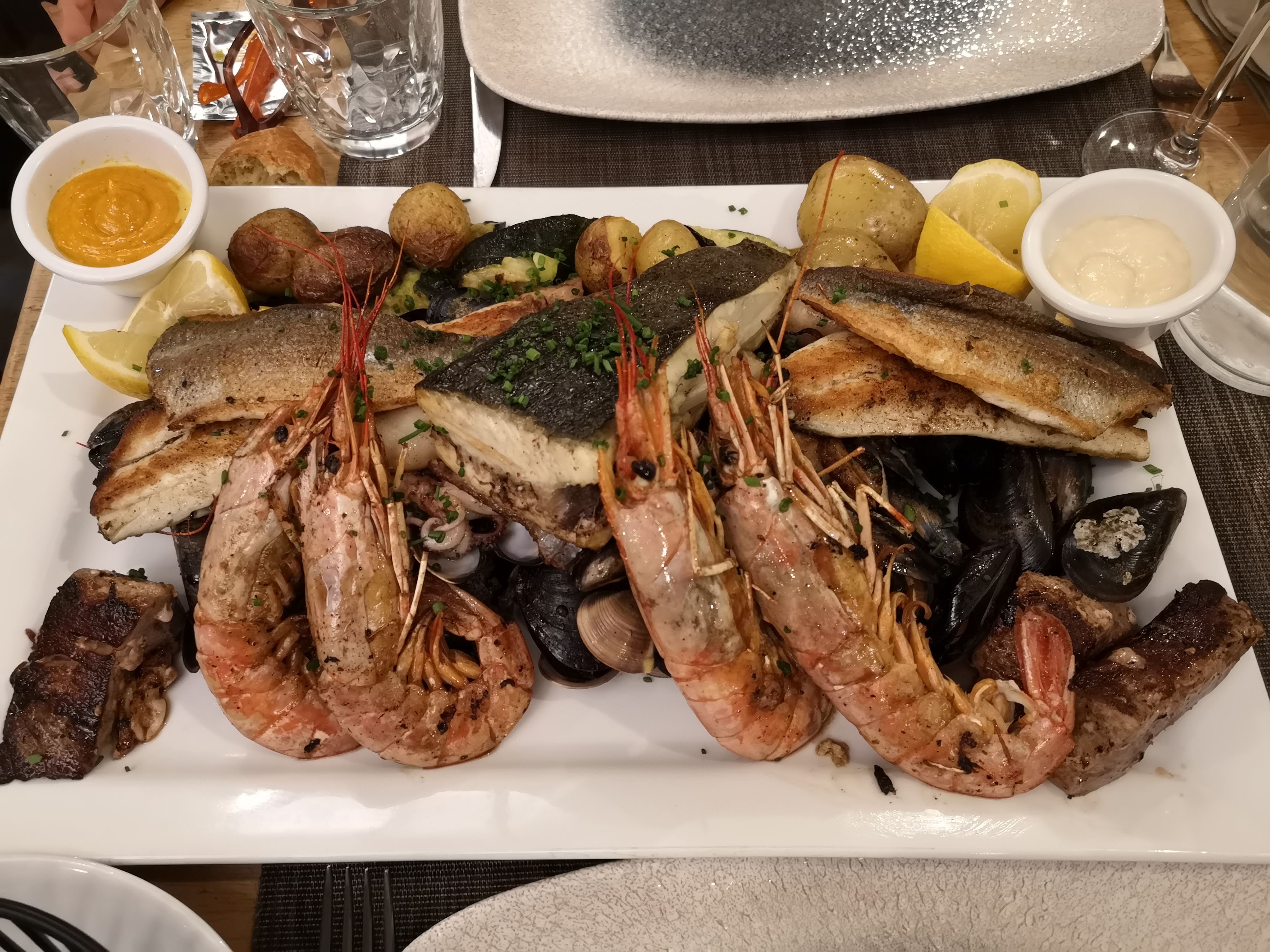 Plat de poissons excellent la pariade dégustation de plusieurs poissons et gambas royale. Un régal. Un conseil allez-y.