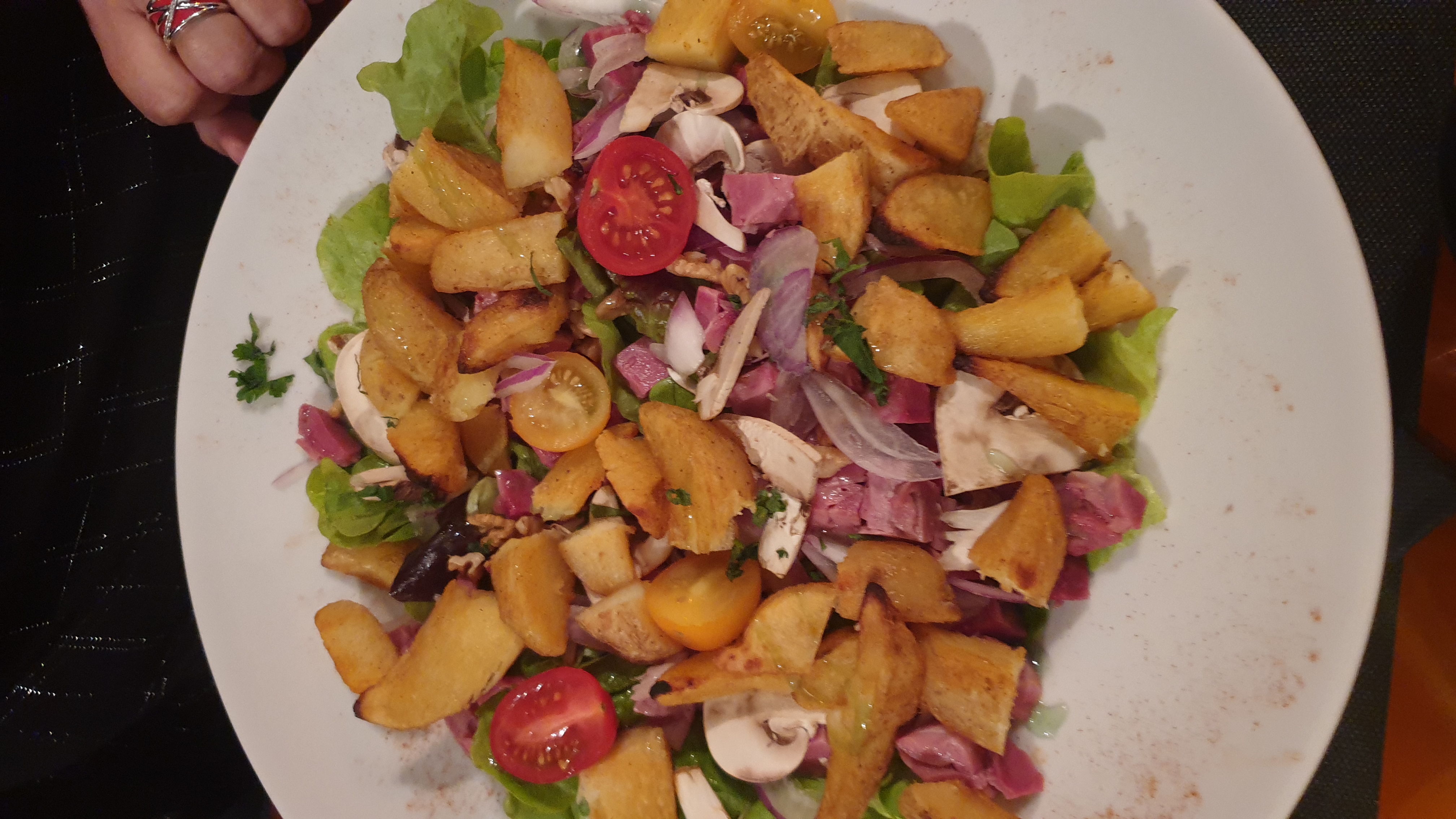 Bof pas terrible ! Plat froid. Salade et tartines sèches. Accueil limite.