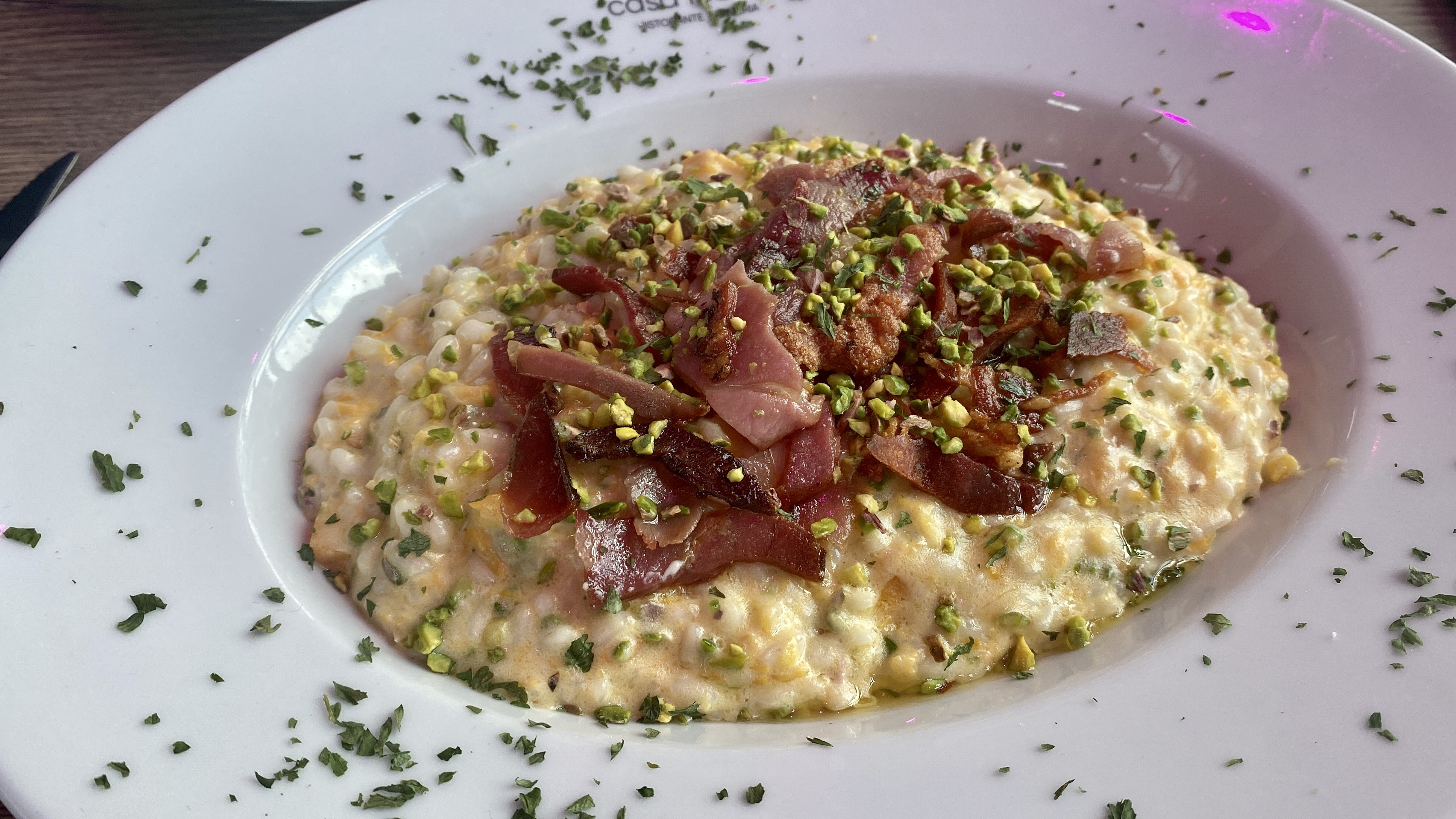 Bon accueil mais un peu de déception. A notre arrivée on nous annonce qu'il n'y a pas de pizza... pour un restaurant Italien🤔. Le risotto était bon, mais limite cuit. Par contre dessert super. D'où mes 3 étoiles