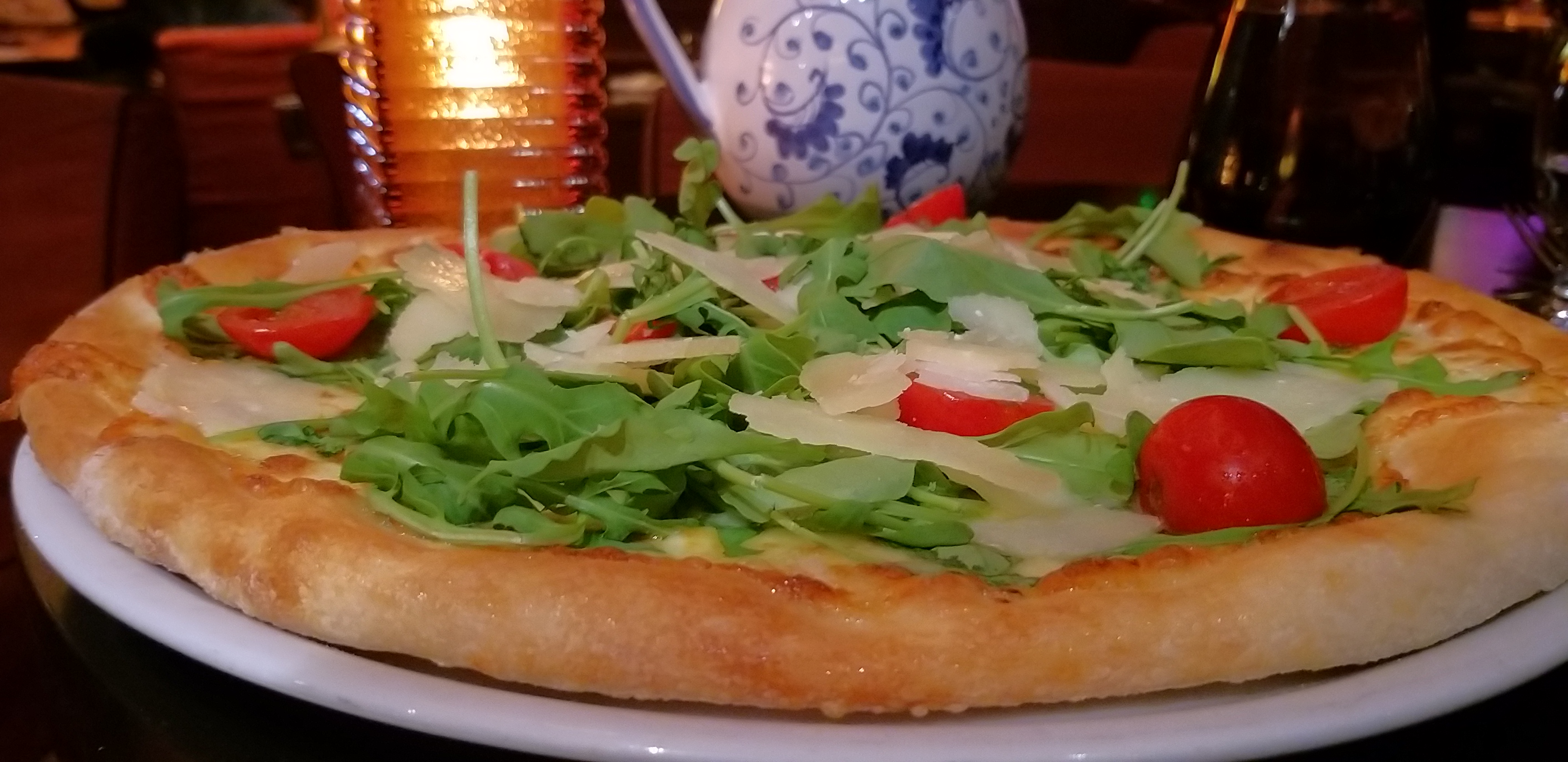 Lieux chaleureux, ambiance lumière tamisée et fond musical sans oublier la décoration raffinée. La pâte des pizzas sont fines et faites maison. Le tiramisu est délicieux également. Personnel, souriant gentil et serviable. Je recommande.