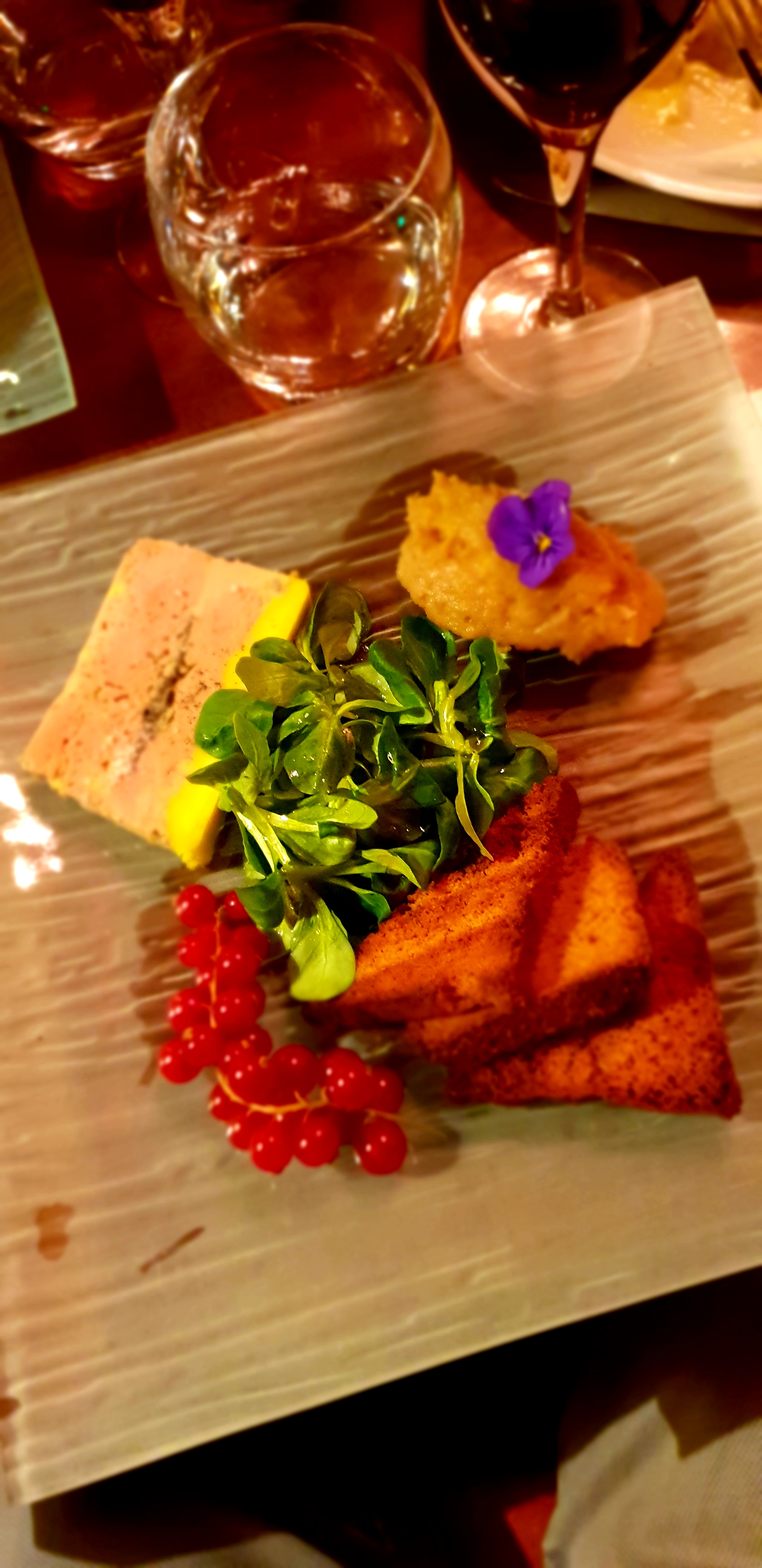 Décevant. Gressin offert avec l'apéritif un peu mous comme si ils étaient ouverts depuis longtemps. Pâtes trop cuites et vin (rouge et blanc), pas bons. Vu la qualité, vaut 2euros e le verre et non 7 ou 8 euros. Dessert correct. Mauvais rapport qualité prix. Cadre agréable, service aimable.
