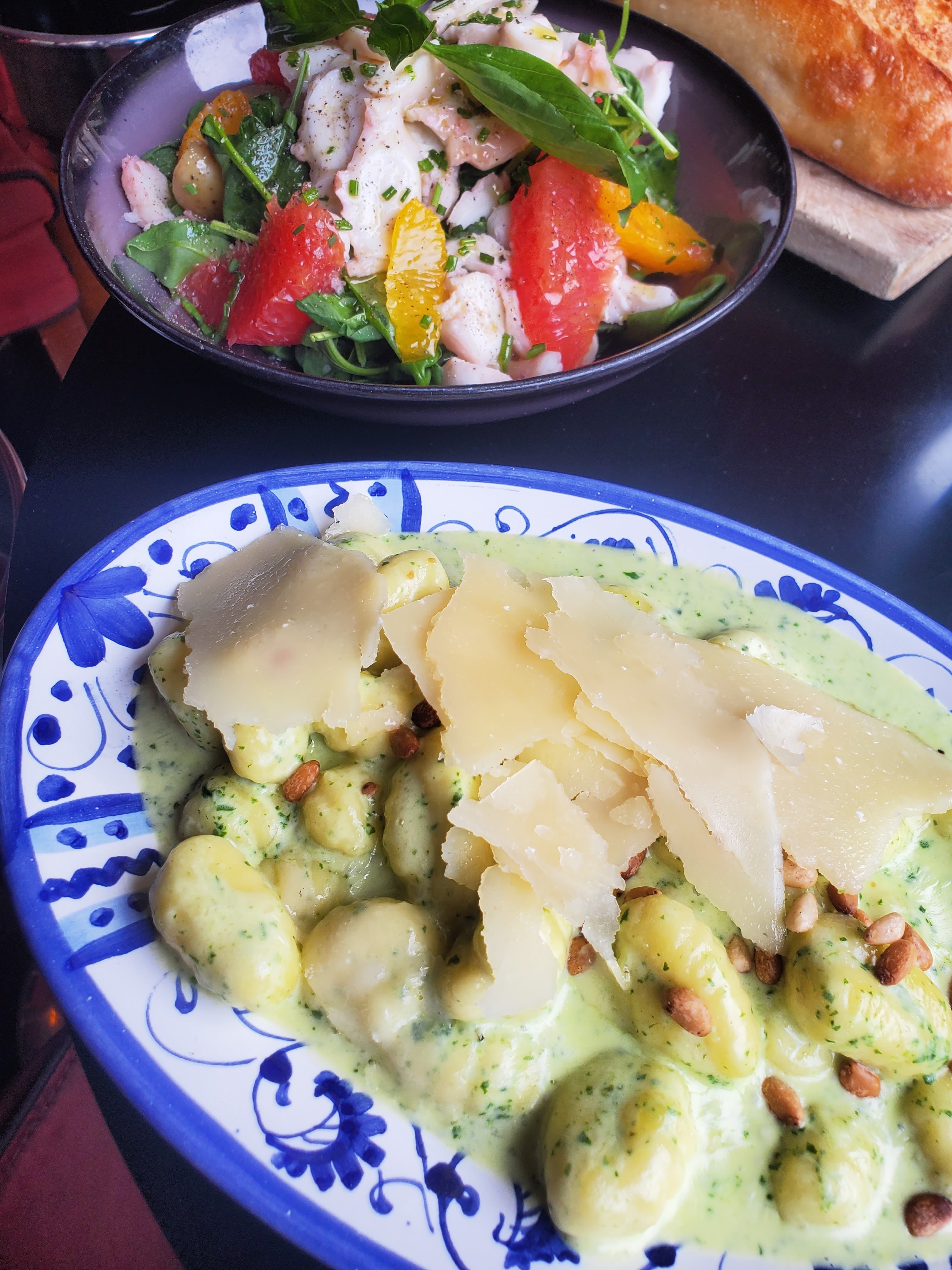 Bons repas mais les saveurs ne sont pas au rendez-vous. Le temps d'attente est un peu long. Bourata, gnocchis, pizza de Parme. Juste pour entrer, nous avons fait la queue, et ils ont pris la table censée accueillir 2 personnes (nous), pour faire une table plus grande pour accueillir le groupe de 7 juste derrière nous. Qui fait ça ?