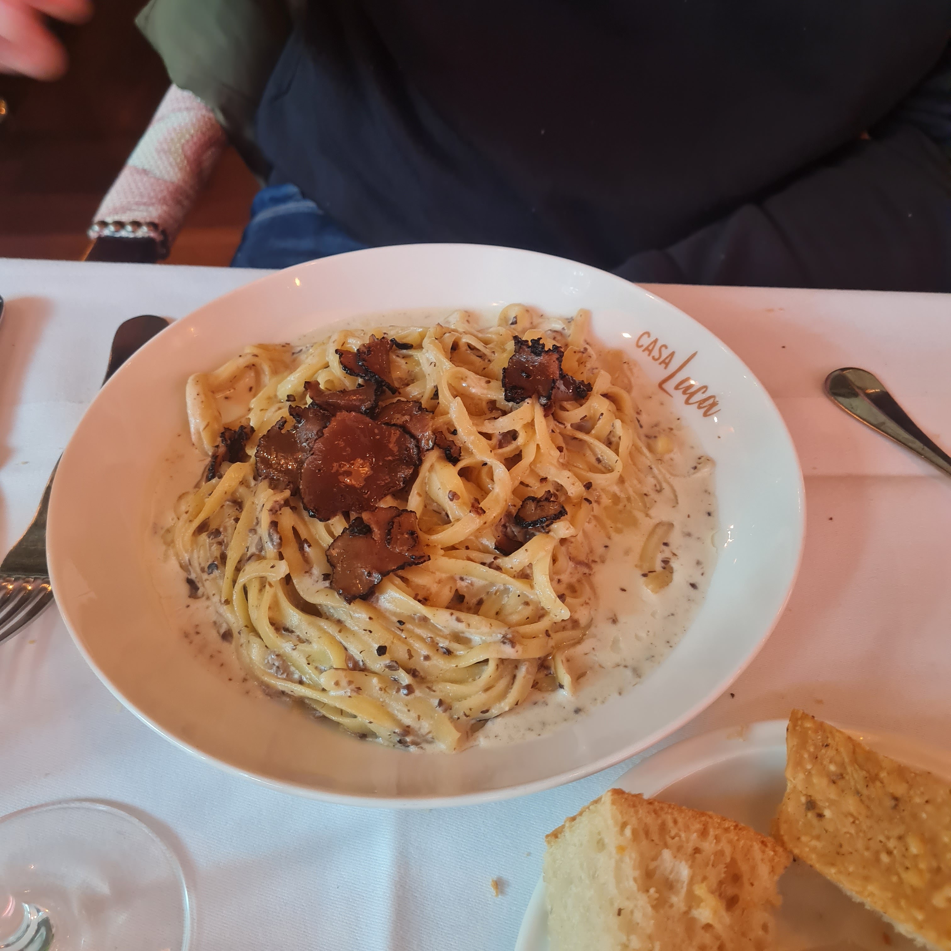 Bon restaurant pour un déjeuner pro. Bons produits. Service compliqué : on a dû tout demander mais les personnes qui travaillent au Casa Luca sont gentilles. J'y retournerai pour déguster les mets italiens car cette fois-ci j'ai pris du poisson qui était très bon (bar) avec des légumes. Très bon pain.