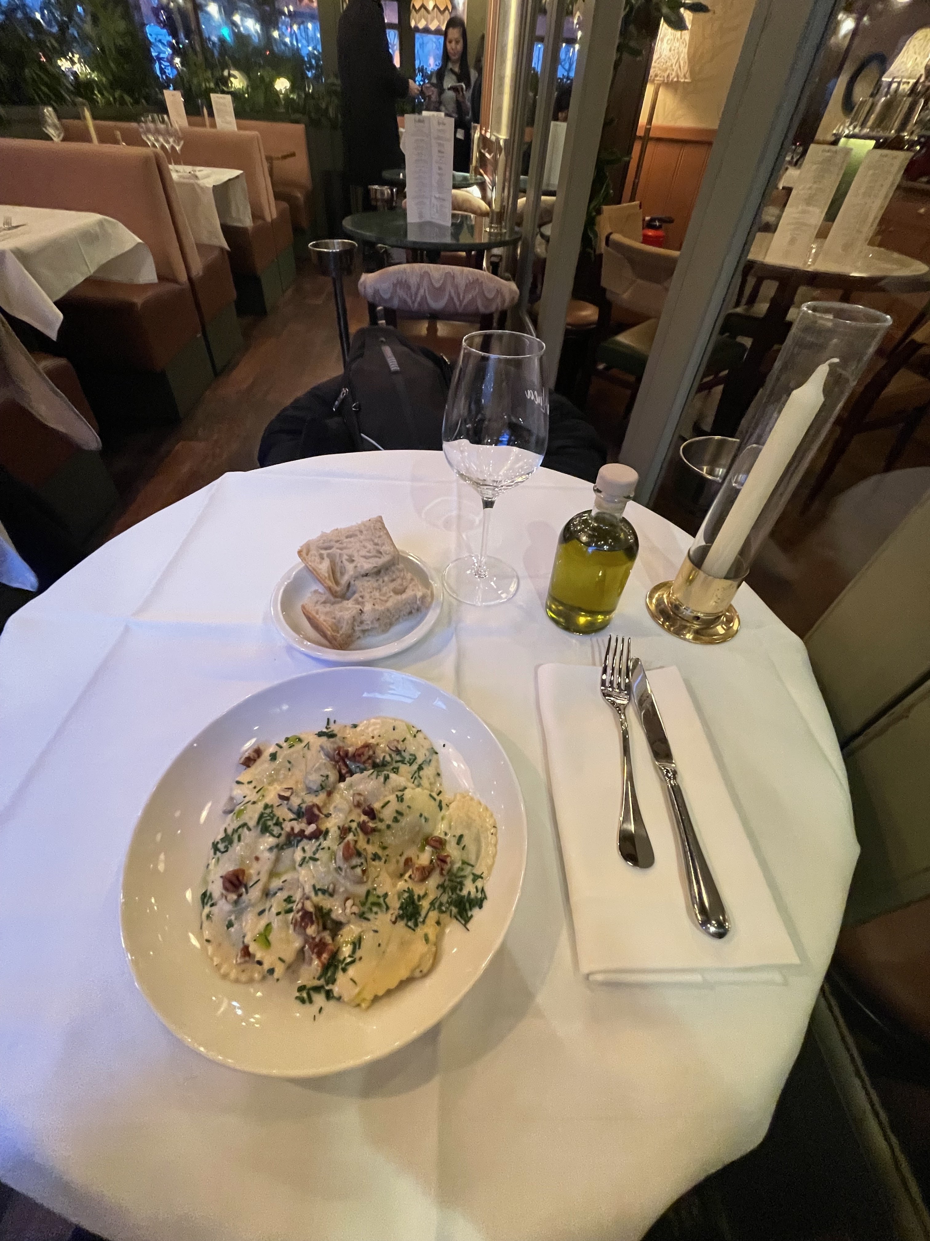 Extrêmement déçu. Escalope de veau très sèche avec aucune garniture, pâte coagulée que ce soit celles accompagnant l’escalope ( en supplément ) ou le plat de pâtes de mon amie. Hallucinant. Je ne m’attendais pas à ça. Prix sans rapport avec la médiocre qualité.