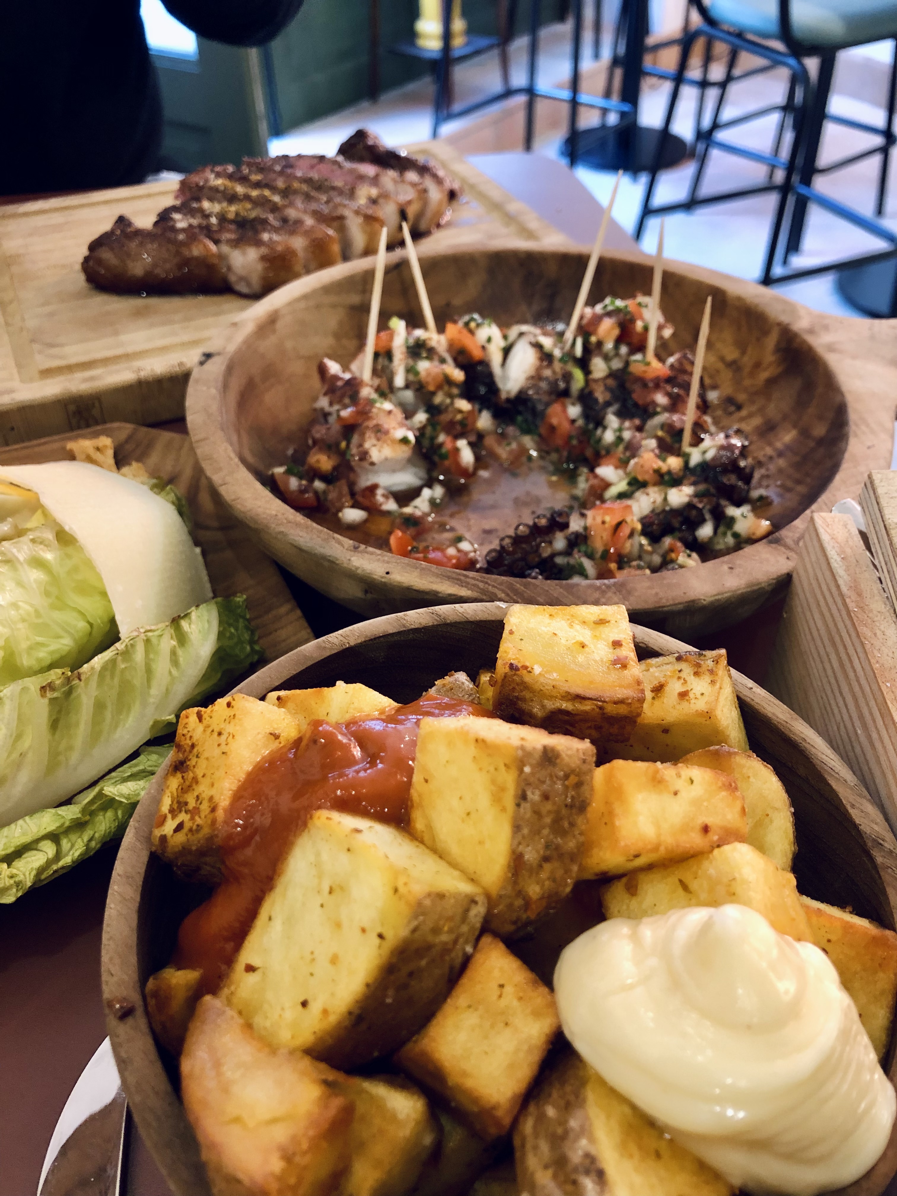 Nous avons fait la découverte de ce nouveau restaurant ce week-end et nous le recommandons !! Endroit très chaleureux avec une cuisine ouverte qui donne un très joli spectacle durant le repas. La cuisson de la viande et du poulpe était parfaite ! Seul petit point à améliorer serait le service qui était un peu long, mais cela n'a en rien gâché notre expérience que nous renouvellerons avec grand plaisir.