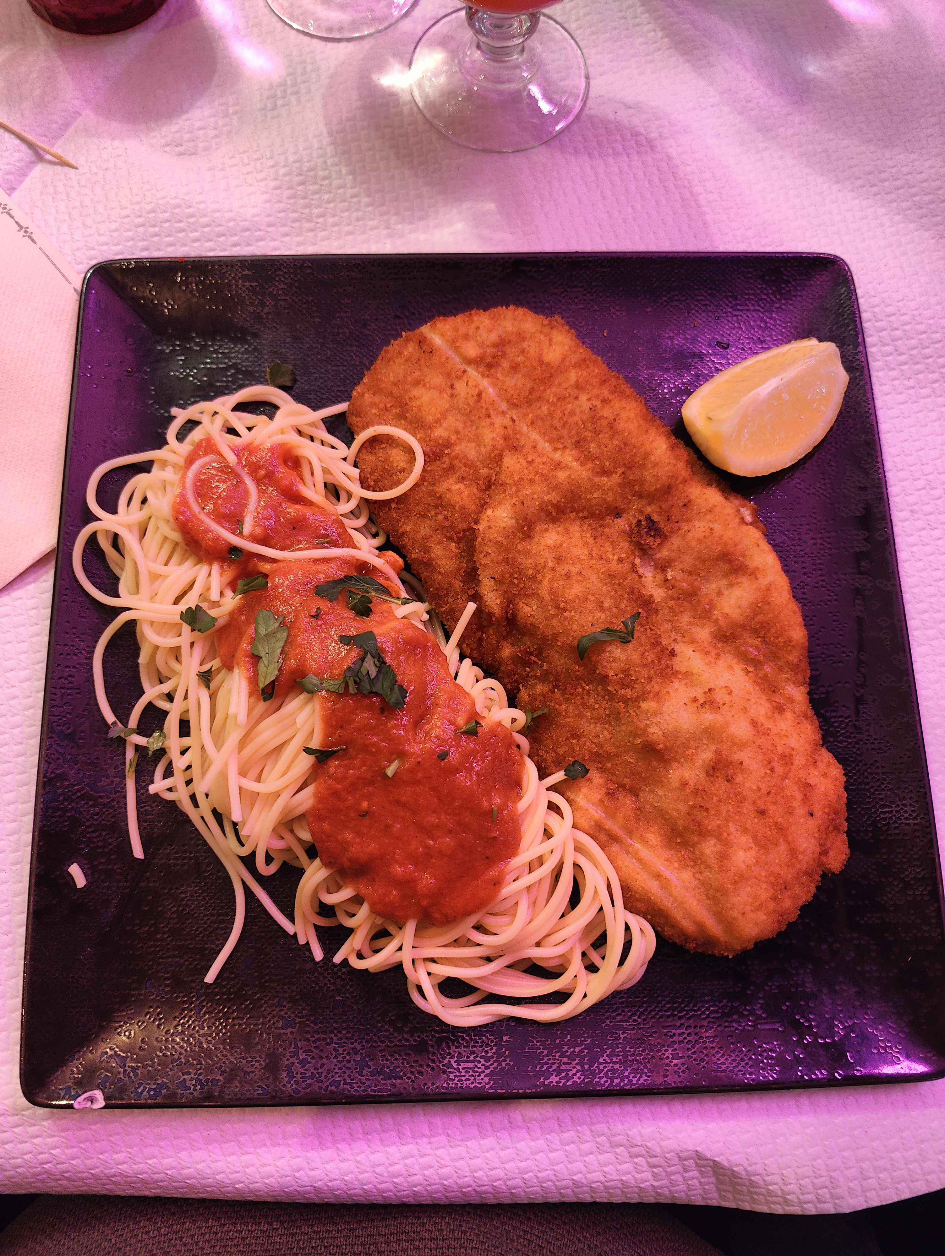 Je déteste laisser de mauvaises notes, mais j’ai fortement été décue de ce restaurant. Si je ne mets pas 1 étoile c’est pour le service très professionnel et rapide. Mais la nourriture... complètement insipide et chère! Une escalope noyée dans de la sauce et du fromage et des pâtes aussi fades que celles que je cuisine chez moi (j’aurais peut-être dû prendre une pizza, un regret). Et croyez moi je ne suis pas difficile d’habitude. Un conseil, ne jamais venir à 2 personnes, il n’y a que des tables pour 4 personnes minimum. Donc pour un peu d’intimité, on repassera, au contraire vous aurez l’impression d’être dans une cantine tassée et bruyante.