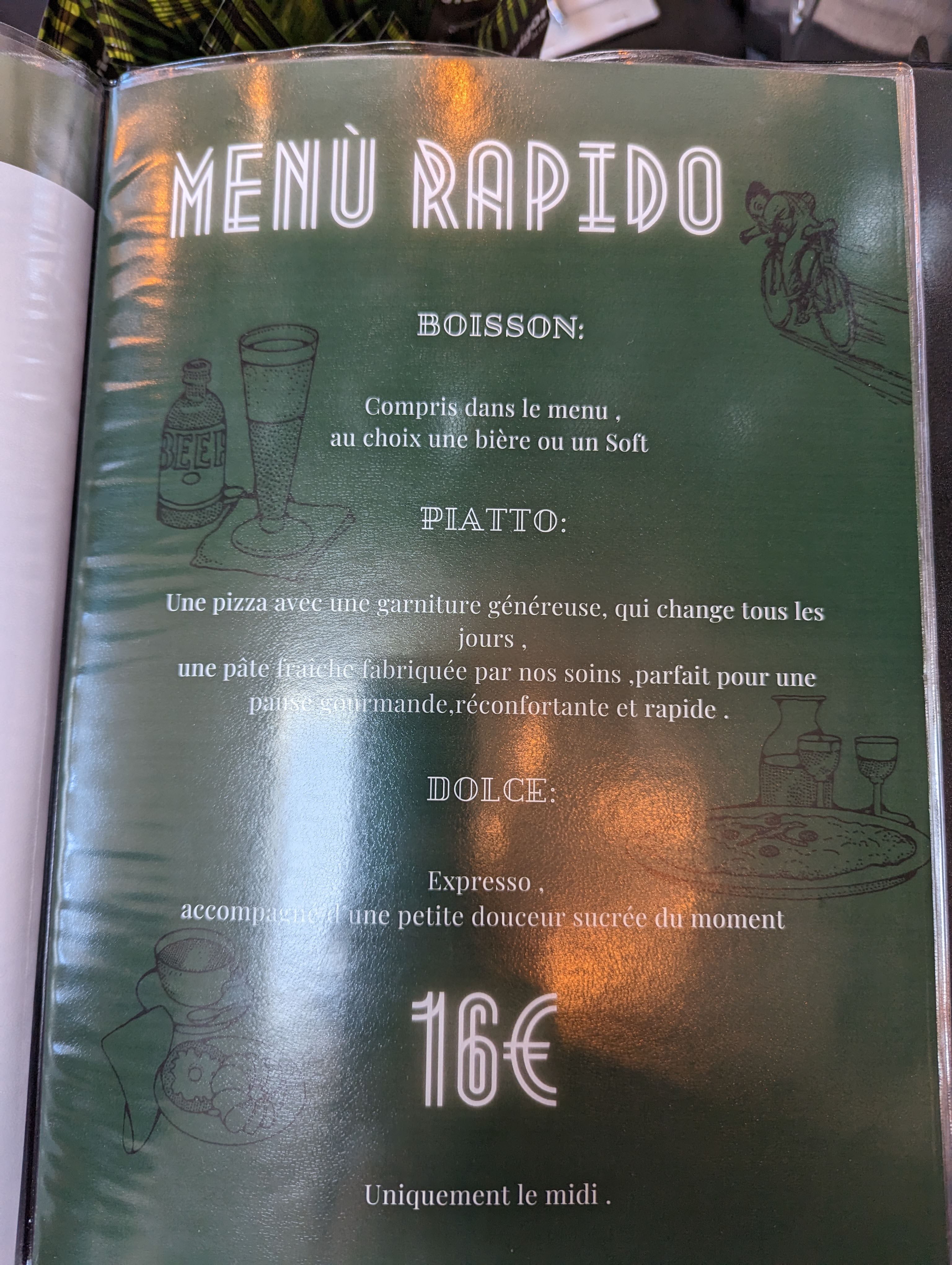 Testé lors d'un déjeuner en semaine. Restaurant accueillant. Cadre calme et agréable. Merci au personnel de service qui était présent et à l'écoute. Produits frais, fait maison, un menu est disponible le midi. Les pizzas étaient bien garnies. Très bon rapport qualité/prix. Restaurant chaudement recommandé.