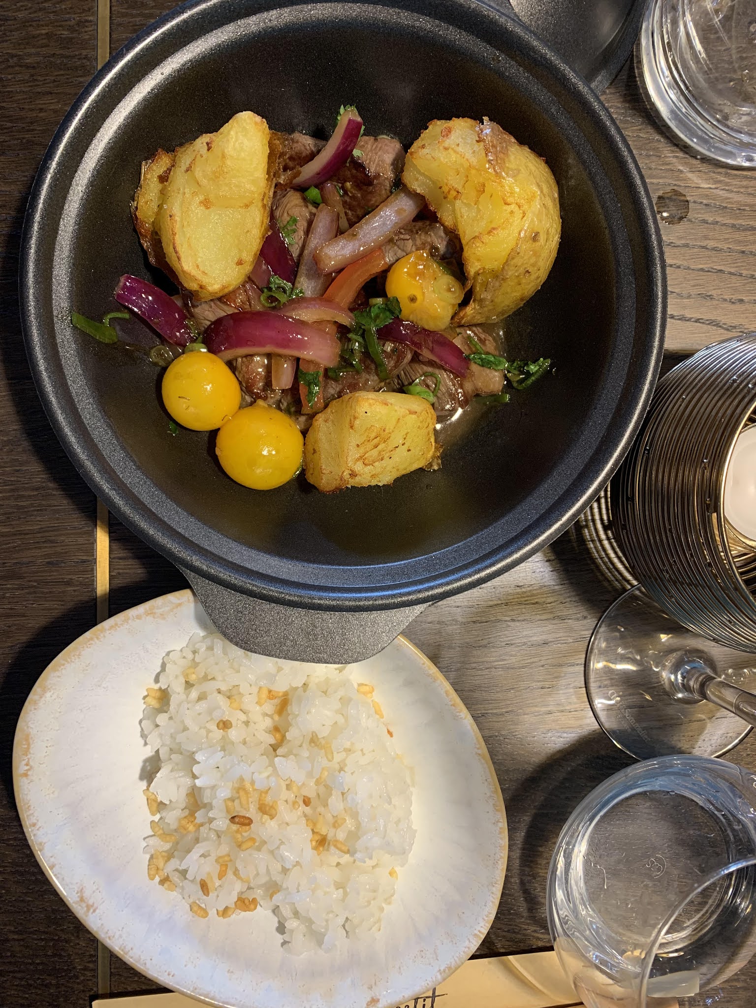 Rien à redire sur le lieu, l'accueil et le service. Sur le contenu des assiettes, les gyozas au foie gras étaient bon (même si la saveur du foie gras était trop légère) et le lomo saltado était excellent. L'addition pour 2 (1 entrée partagée, 1 plat de résistance chacun et un cocktail chacun) était par contre trop élevée (>100 euros) par rapport à l'expérience vécue, bien que bonne globalement.