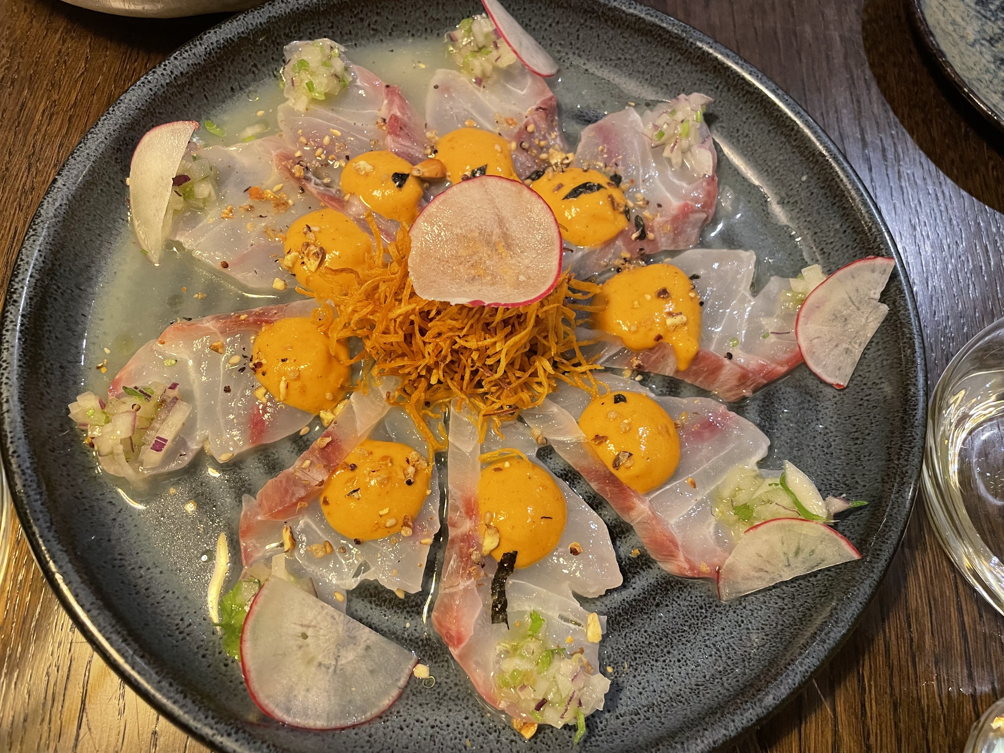 Un très agréable accueil dans un beau restaurant - un suivi attentif tout au long du repas - remarquable Pisco Sour comme ceux que j'ai pu déguster au Pérou - des plats très joliment présentés, aussi bons que beaux - L'association de deux Chefs : l'un Péruvien avec l'ancien Chef du restaurant le Mandalay de Levallois est une réussite totale - Définitivement pour nous ce restaurant se hisse en tête des meilleurs restaurants de Levallois. Nous étions des habitués fidèles du Mandalay aujourd'hui fermé, et nous le deviendrons à Casa Nikkei-