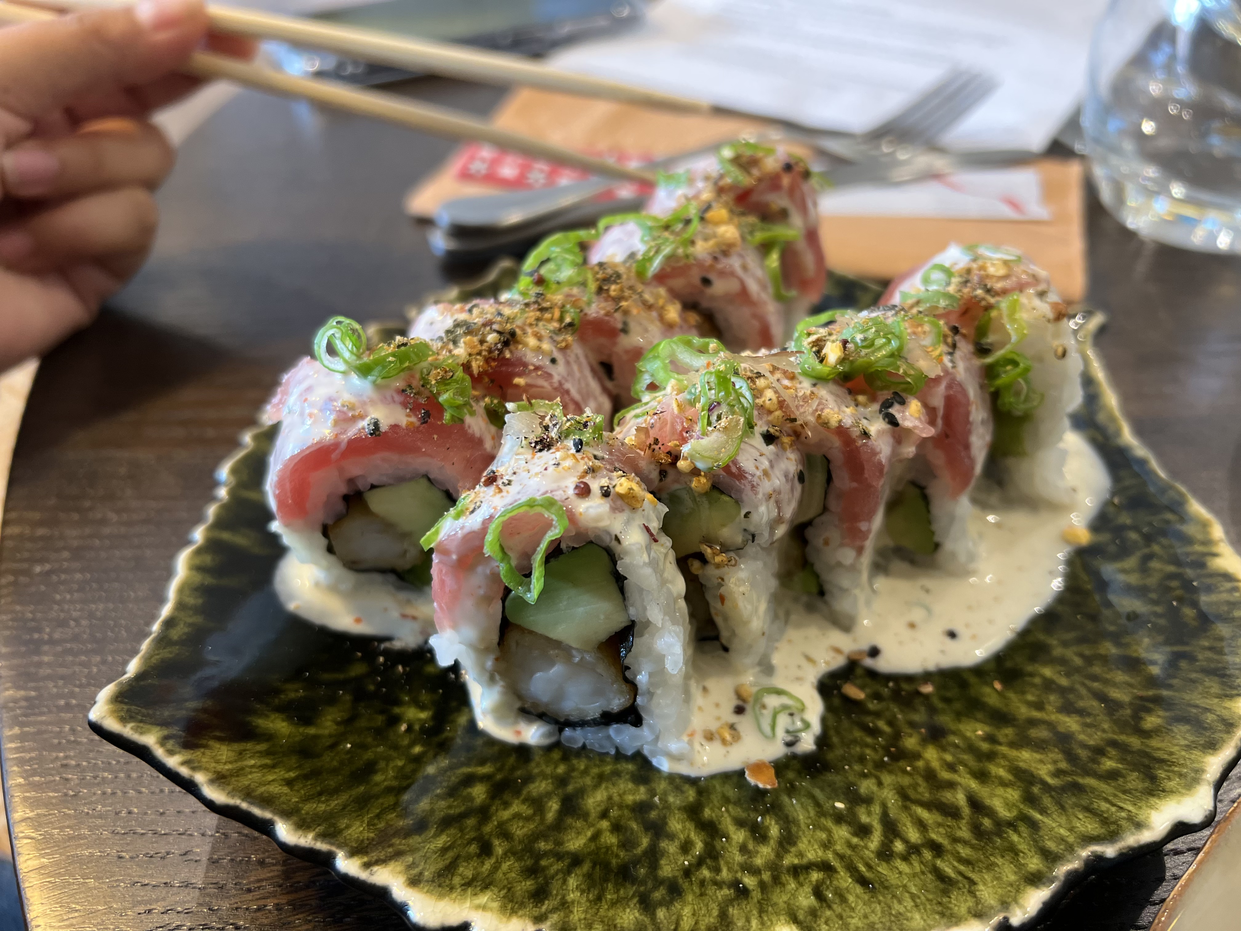 C'était un endroit incroyable avec de bonnes vibrations ! La nourriture était exceptionnellement délicieuse. La serveuse était très gentille et ouverte pour expliquer le menu et donner la meilleure recommandation 10/10. Je pense que c'est le meilleur endroit pour manger des sushis. J'ai hâte de revenir :)) merci !