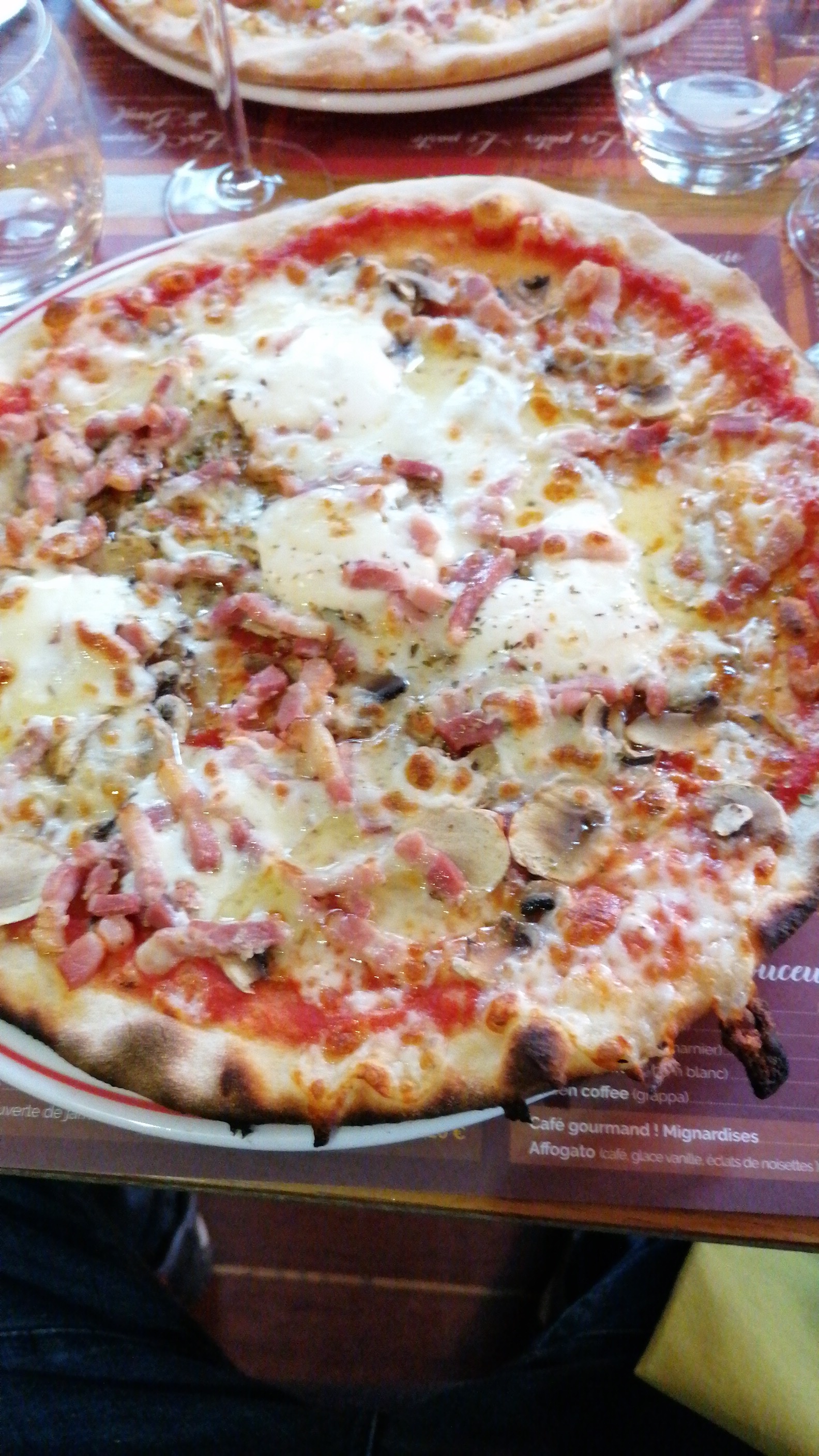 Mon manteau garde encore des séquelles de mon passage dans ce lieu! Aspergée d’alcool par le serveur qui s’est excusé bien tardivement et qui se permet d’ironiser à notre départ « On n’aura pas de pourboire! » Les tables étaient extrêmement serrées pour une soirée de St Valentin, ce qui explique bien entendu la chute du verre en question! Pour ce qui est de la pizza, rien d’exceptionnel pour le prix. En résumé, passez votre chemin!