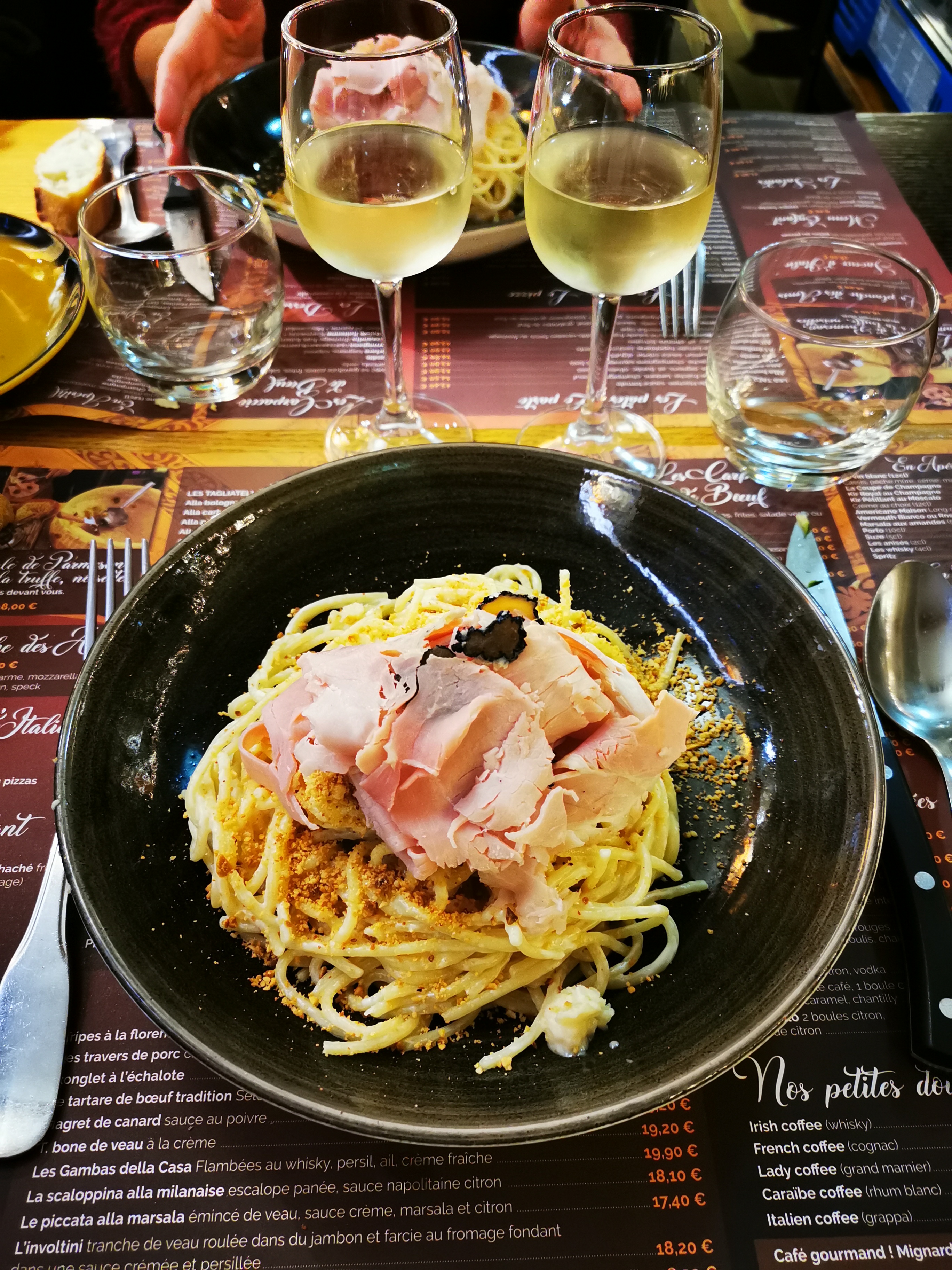 Accueil au top, service au top, Yoann et son équipe sont juste … AU TOP 😊 Et ce plat, « La Meule », parmigiano flambé sur spaghettis et jambon aux truffes. Une révélation ! Adresse à recommander sans modération.