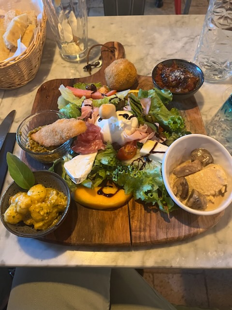Que dire...si ce n'est qu'un délice ! Si vous aimez les produits italiens, je vous parle pas de pizza ni de pâtes là, allez y ! L'accueil est chaleureux et convivial, les plateaux y sont délicieux et variés . Des câpres ainsi que des mini poivrons incroyables sans parler du reste (choux farcies, gnocchi, roulés de veau et de jambon à la sauce champignons etc...) allez y !!! Et les desserts....miam, miam, miam. Une très très bonne adresse💖 Ce n'est pas de la cuisine local, mais franchement c'est très bon et le concept de la planche a partager est super sympa. Si vous avez la chance d'y aller au beau temps vous pourrez profiter de la terrasse montée sur la place avec la fontaine.😍