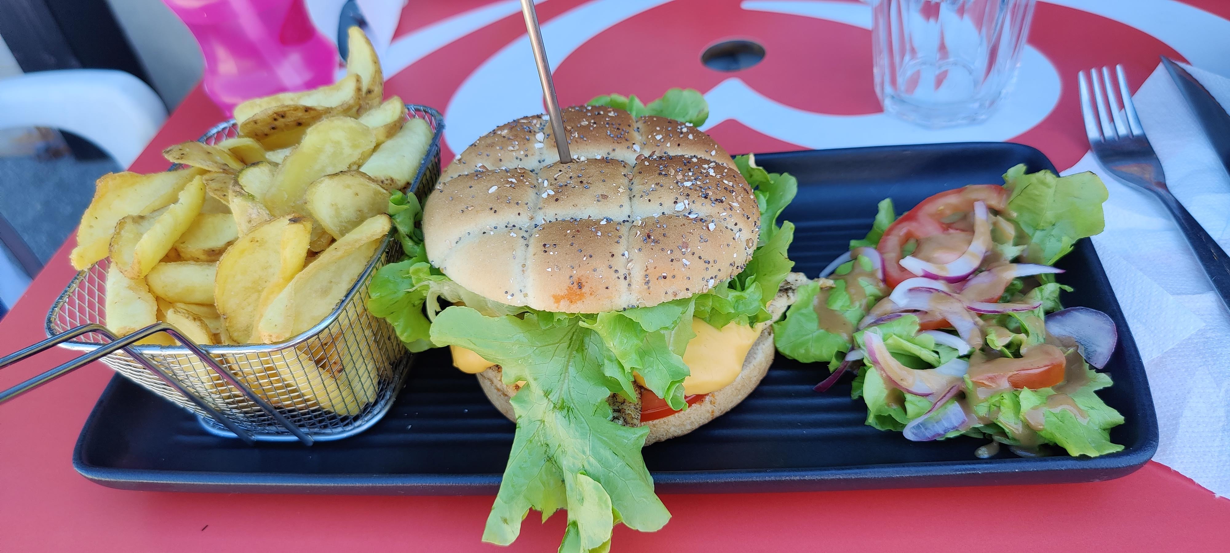Vraiment repas au top nous avons mangé en famille avec ma tante, 1er Restaurant depuis la sortie du Confinement. Les plats sont fait maison et de qualité, nous avons pris 2 Burgers 1 Bœuf et 1 poulet servit avec des frites maison et une bonne salade en accompagnement le prix et très correct rien à dire ci ce n'est que je vous conseille vivement de venir pour goûter à une bonne cuisine dans un cadre convivial et accueillant avec des patrons très sympa avec la clientèle. Bonne dégustation à vous.