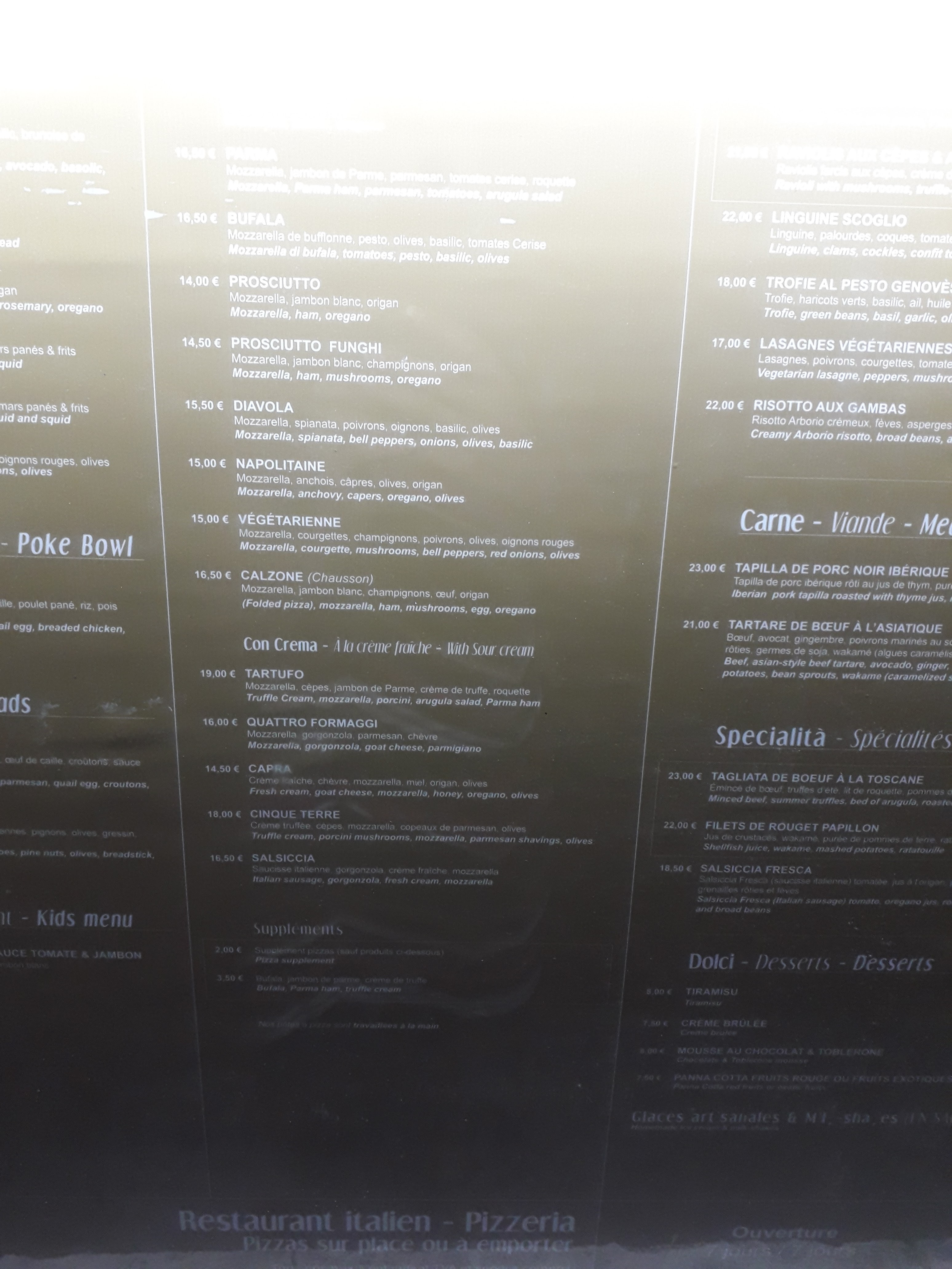 Des prix élevés, un service désordonné, des pizzas à peu près correctes (si l’on omet la pizza aux fruits de mer intégrant les coquilles de moule et les crevettes entières, tête et antennes intégrées dans la pâte…). Bref, mieux vaut éviter de s’y arrêter ! ————— —> Précisions suite à la réponse : 1. Nous maintenons que le rapport qualité/ prix n’est pas bon (cela ce constate aisément avec les autres restaurants du coin). 2. Sans être guide culinaire, cette fonctionnalité de Google maps est faite pour donner son avis… ce que nous faisons lorsque nous dînons au restaurant.