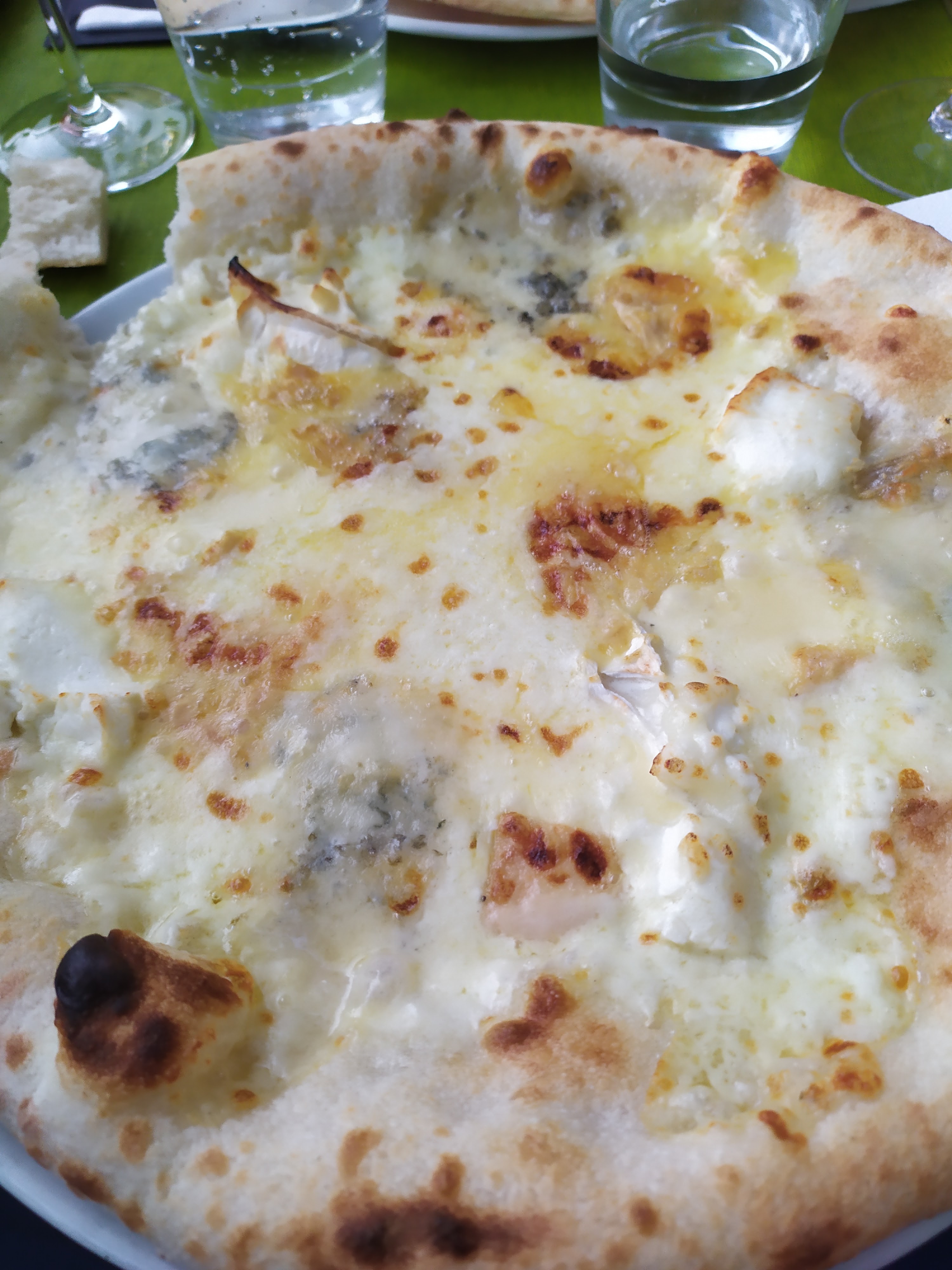 Terrasse agréable, service sympathique. La pizza à la truffe ne sent pas beaucoup la truffe mais c’était bon. Le rapport qualité prix est bien.
