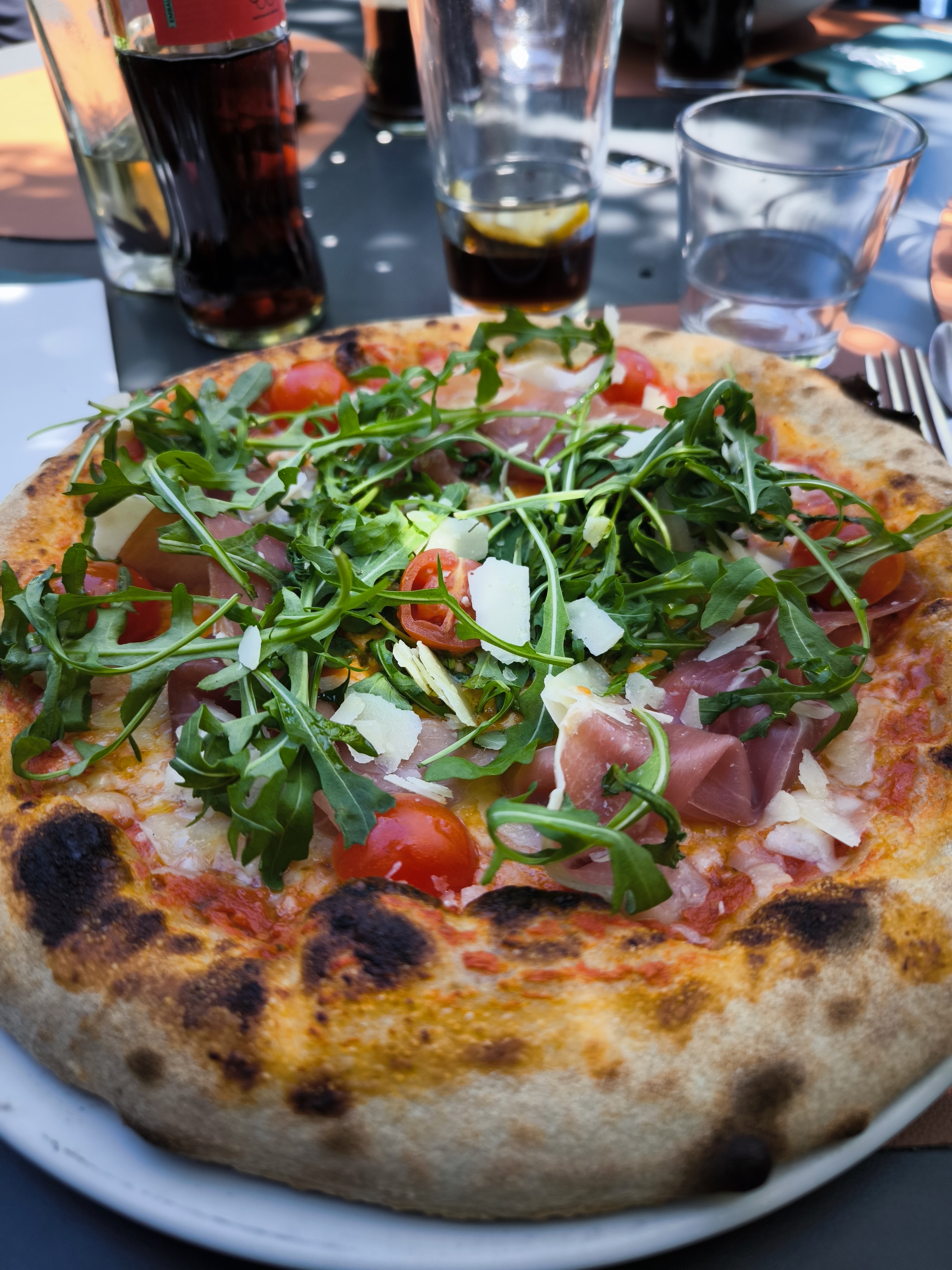 Cuisine très bonne, tant les pizza que les pâtes (nous avons pris les raviolis au cèpe et truffe , ainsi que pâte au gorgonzola et noix). J'ai moins aimé le cadre qui certe très beau avec bcp de verdure à l'inconvénient d'attirer les mouches (qui se pose sur les pizzas de client), moustique et guêpes. J'ai trouvé également le service a la fois long au départ sensation d'être oublié pour la commande puis expéditif, les plats se sont enchaînés ensuite sans doute pour nous sortir avant le second service.