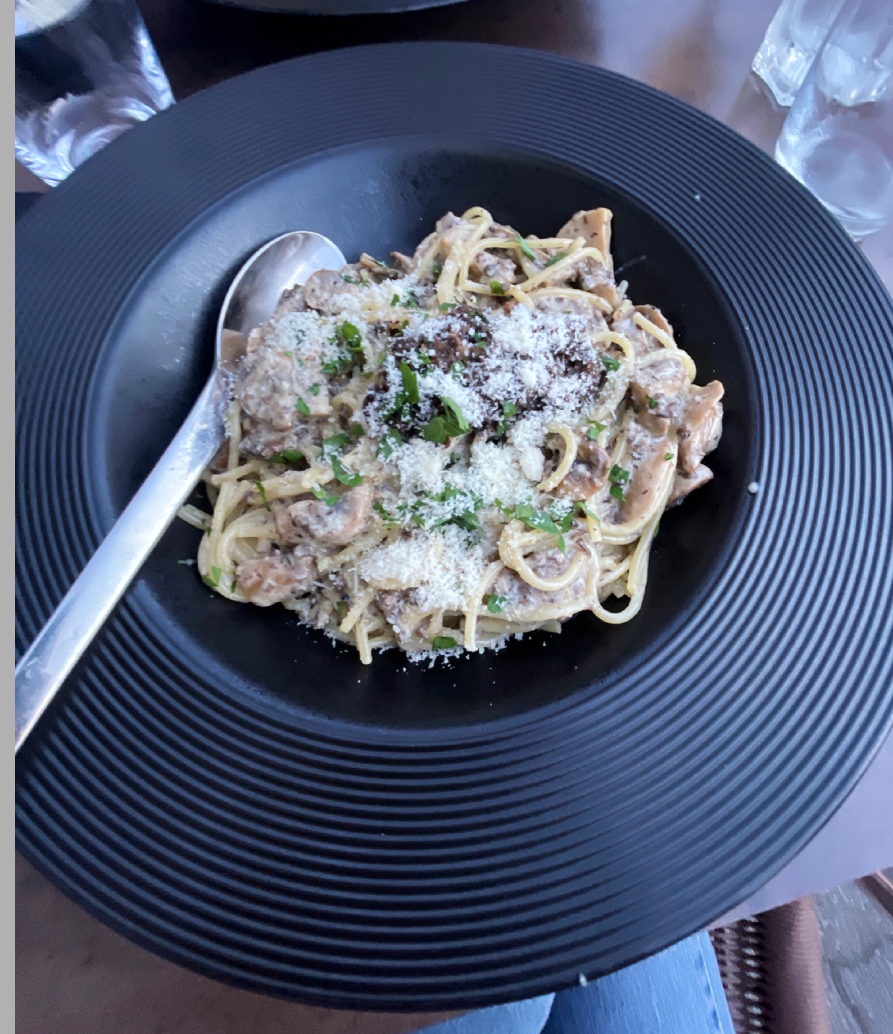 Commande d'une pizza et et de pâtes. J'ai pris un vitellino et surprise ou est le veau car il faut le chercher du coup les pâtes coûtent vraiment très très cher. La pizza est de qualité moyenne. Bof restaurant où je ne mettrai jamais les pieds.