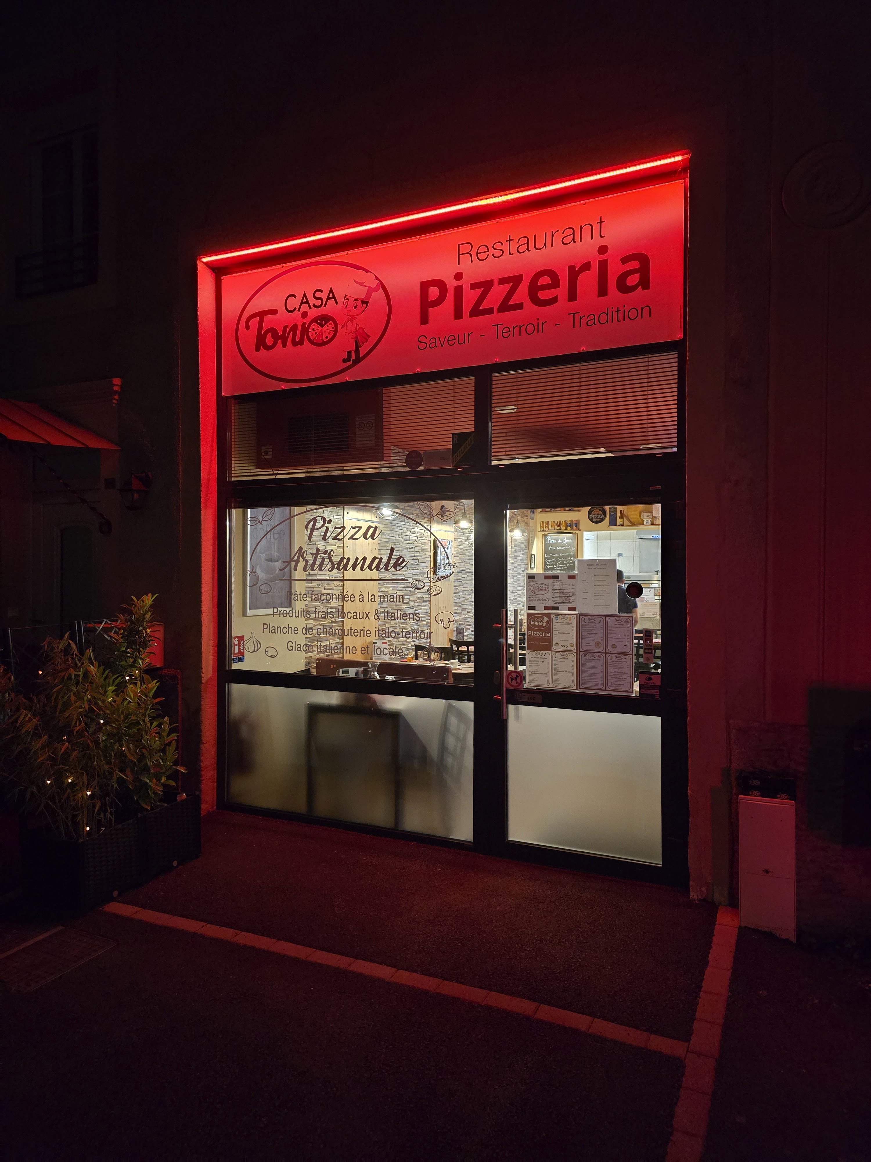 Tout était parfait ! À commencer par l'accueil : très chaleureux et souriant ! Les pizzas sont succulentes. La pâte est moelleuse et croustillante. Et elles sont très généreuses comme le patron qui y met tous son cœur ! Donc la visite dans ce petit village vaut largement le détour pour finir par une pause à la Casa Tonio !