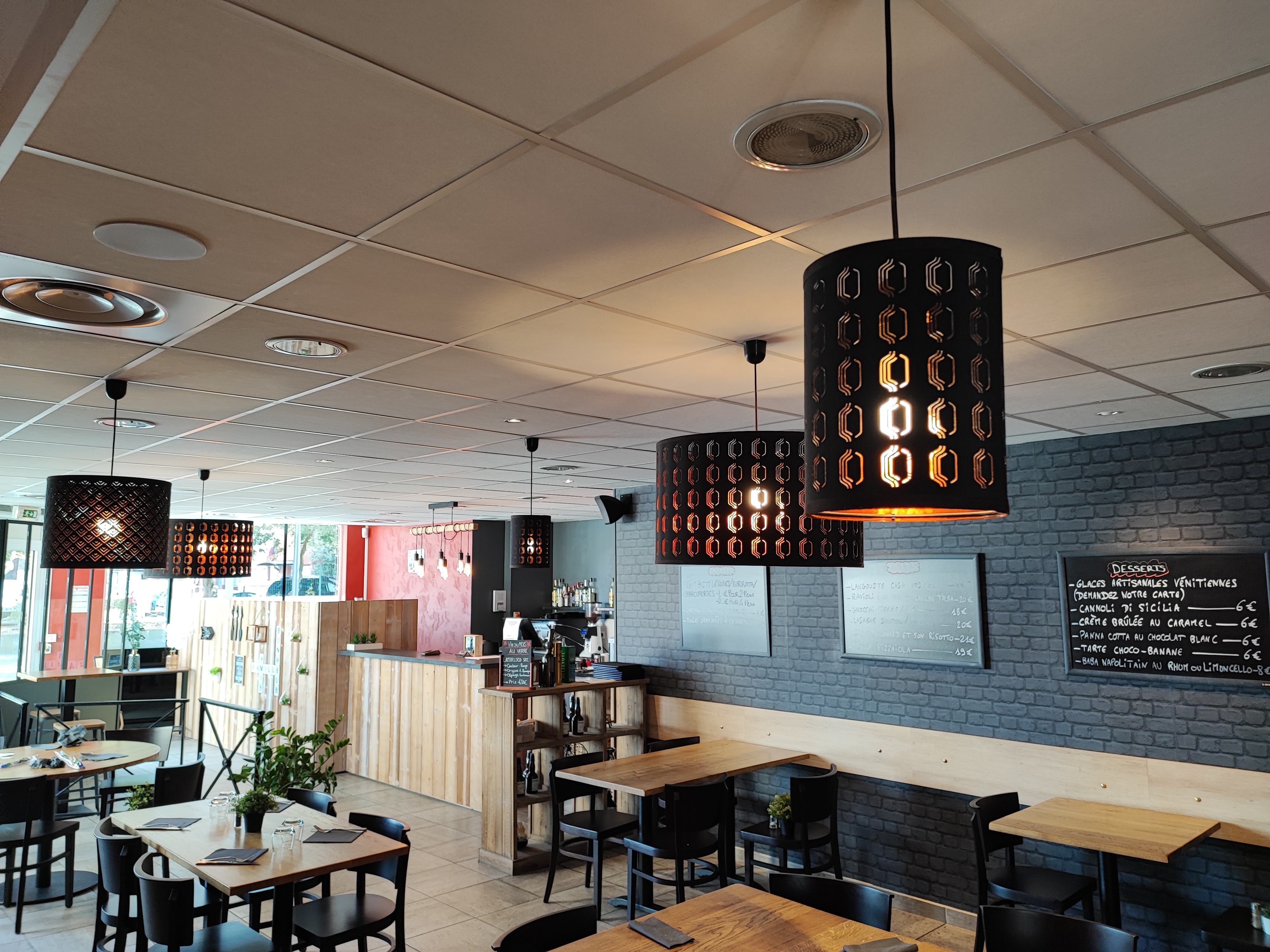 Difficile de noter ce restaurant, en entrant le cadre est je trouve très beau et la décoration elle aussi très réussie. Pour les entrées, nous avons pris les charcuteries avec la burrata. J'ai trouvé les charcuteries très bonnes, la burrata étant perfectible ( un peu fade). Pour les pizzas, là par contre ça ne m'a rappelé en rien l'Italie. Déjà le prix, 12€ la Margarita et c'est plutôt entre 15 et 18€ pour la moyenne... A ce prix là, je m'attends à de la haute voltige, ben pas vraiment... Alors ce n'est pas la pire pizza de ma vie loin de là mais certainement pas parmi les meilleures. La pâte est sèche et dure (on est bien loin de Naples), le fromage totalement insipide et le rendu global est finalement très fade malgré la qualité apparente des ingrédients et le prix qui lui est bien salé... Pour le dessert, on sait que 90% des fondants au chocolat des restaurants sont du surgelé Metro ce qui est le cas ici aussi mais celui ci n'est pas génial. Par contre, les profiteroles aux cannelés sont très bonnes. Expérience moyenne donc pour les pizzas, à voir pour les autres plats...
