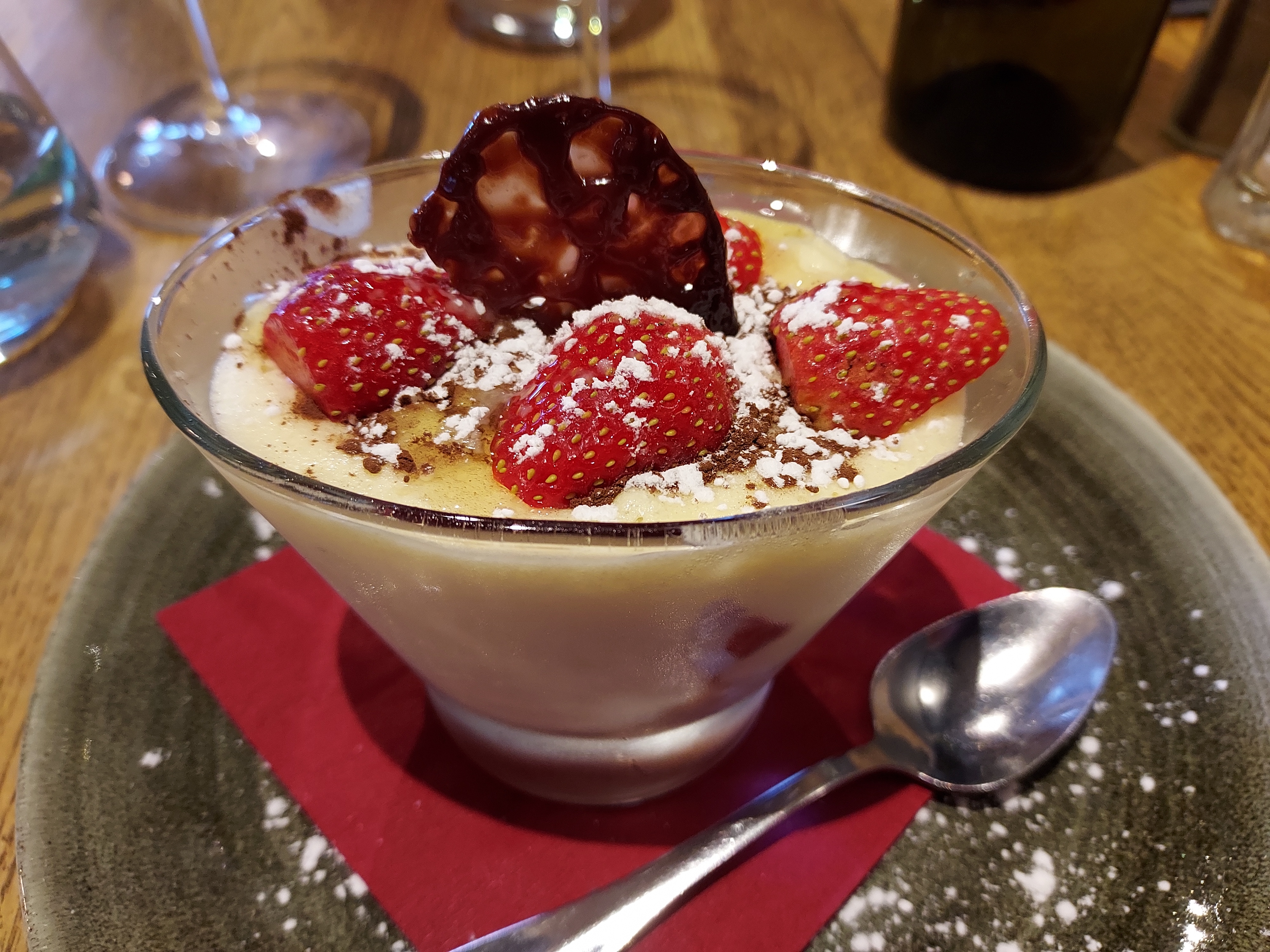 J'aime beaucoup ce restaurant, j'y retourne régulièrement avec toujours le même plaisir. La carte change régulièrement, en dessert, ce soir j'ai pris le Tiramisù aux gariguettes, un délice