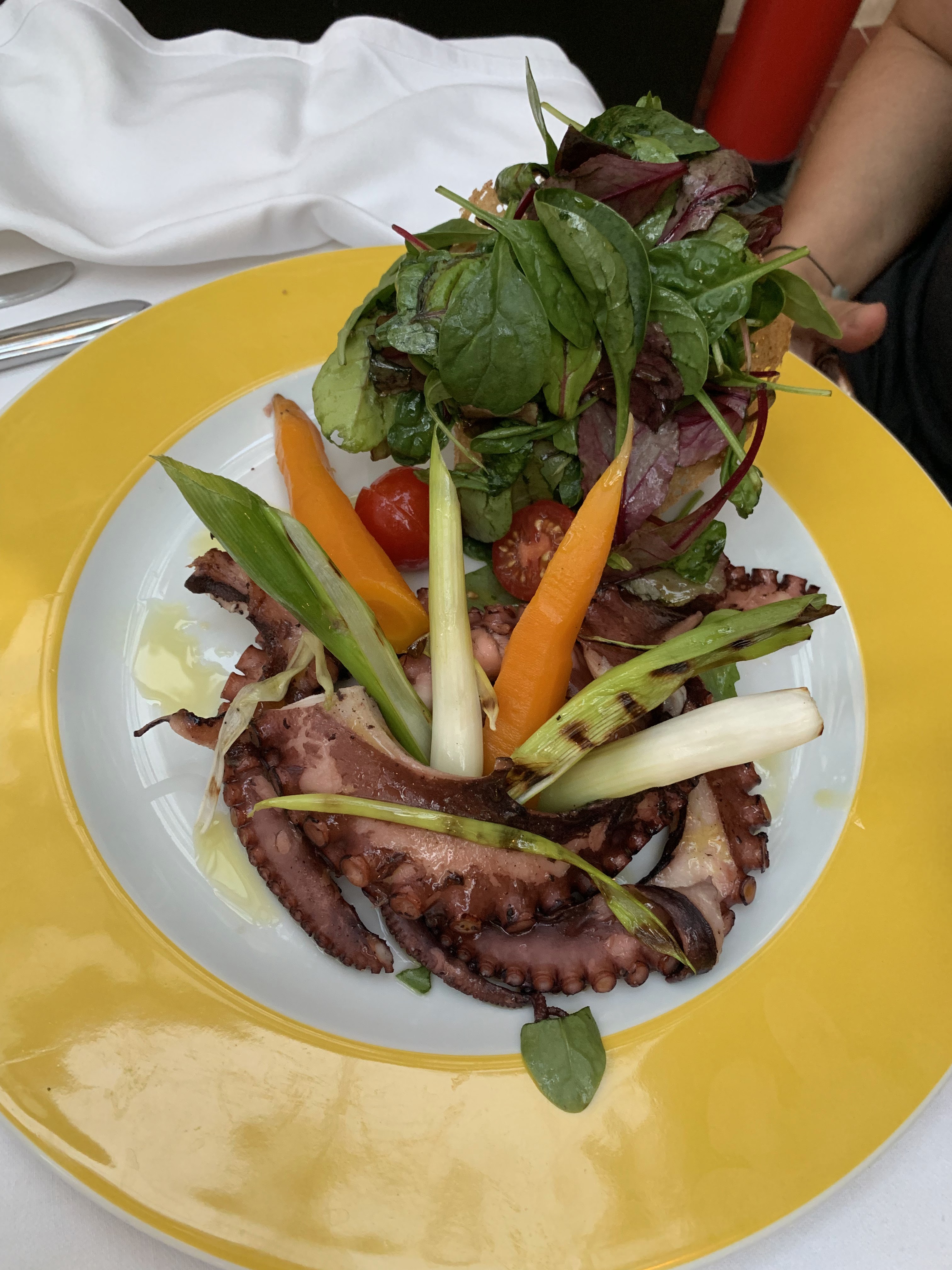 C'était tellement génial. Tout a commencé avec le chien qui a reçu de l'eau immédiatement sans rien demander et on nous a immédiatement donné les menus. Le serveur nous parlait également un excellent allemand. Les temps d'attente étaient très courts, donc la nourriture était apportée immédiatement et elle était également absolument délicieuse. De même les cocktails. Ici, même le chien était servi avec du poulpe. Nous n’avons jamais rien vécu d’aussi grand et d’aussi affectueux. De plus, les toilettes sont totalement propres ainsi que la cuisine. Nous reviendrions à chaque fois. Si je pouvais, je donnerais beaucoup plus d'étoiles. P.S. Malheureusement, je ne peux pas télécharger la vidéo du chien heureux mangeant du poulpe ici.