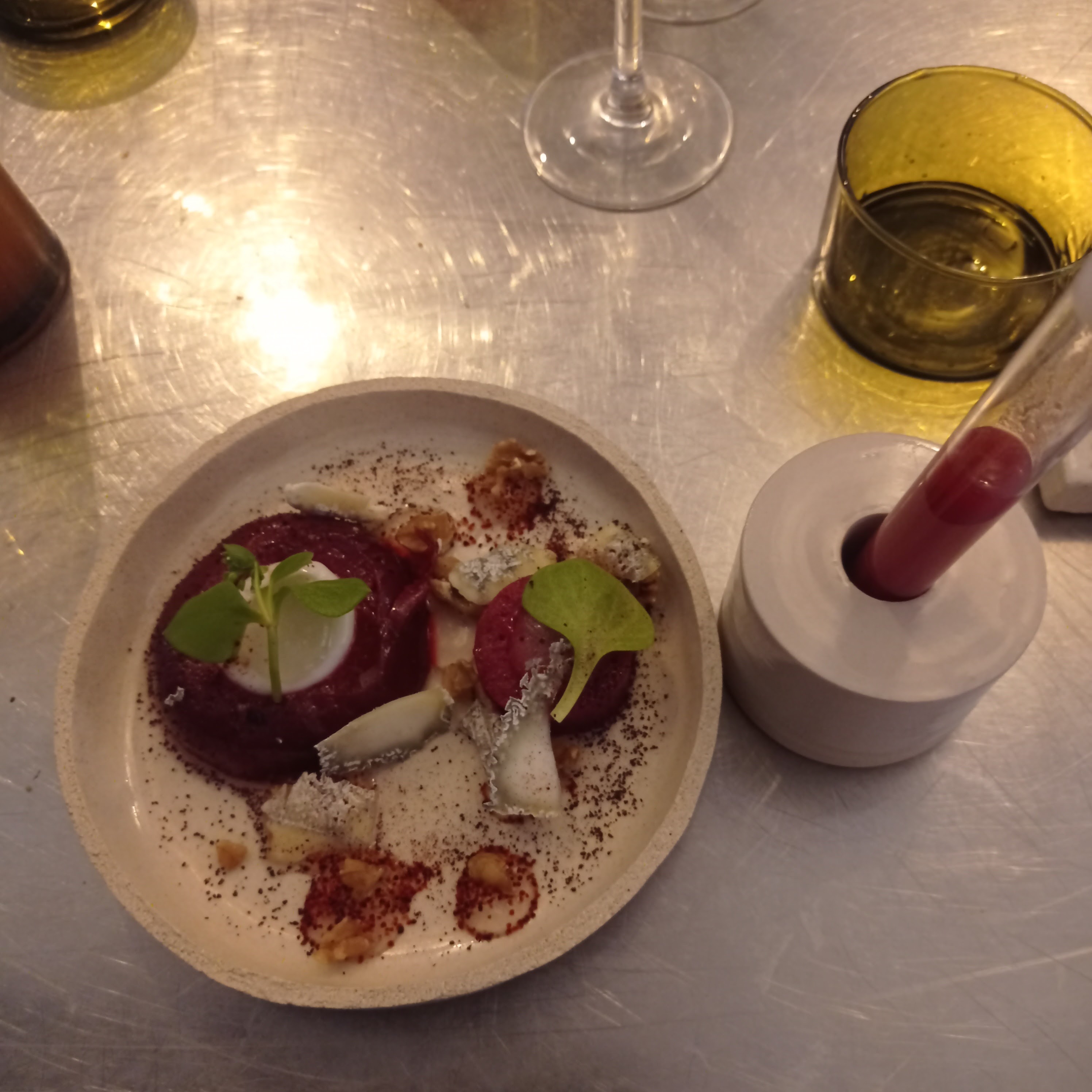 Dîner partagé entre amis, superbe expérience. Restaurant et personnel très accueillant, décoration épurée et tamisée avec un fond de musique très agréable. J’ai vraiment apprécié les différentes saveurs et textures lors de ce repas, menu réalisé avec des produits de saison et locaux. Tout ce qu’il faut pour passer une bonne soirée ! Je conseille fortement et compte bien revenir pour tester les recettes au fil des saisons