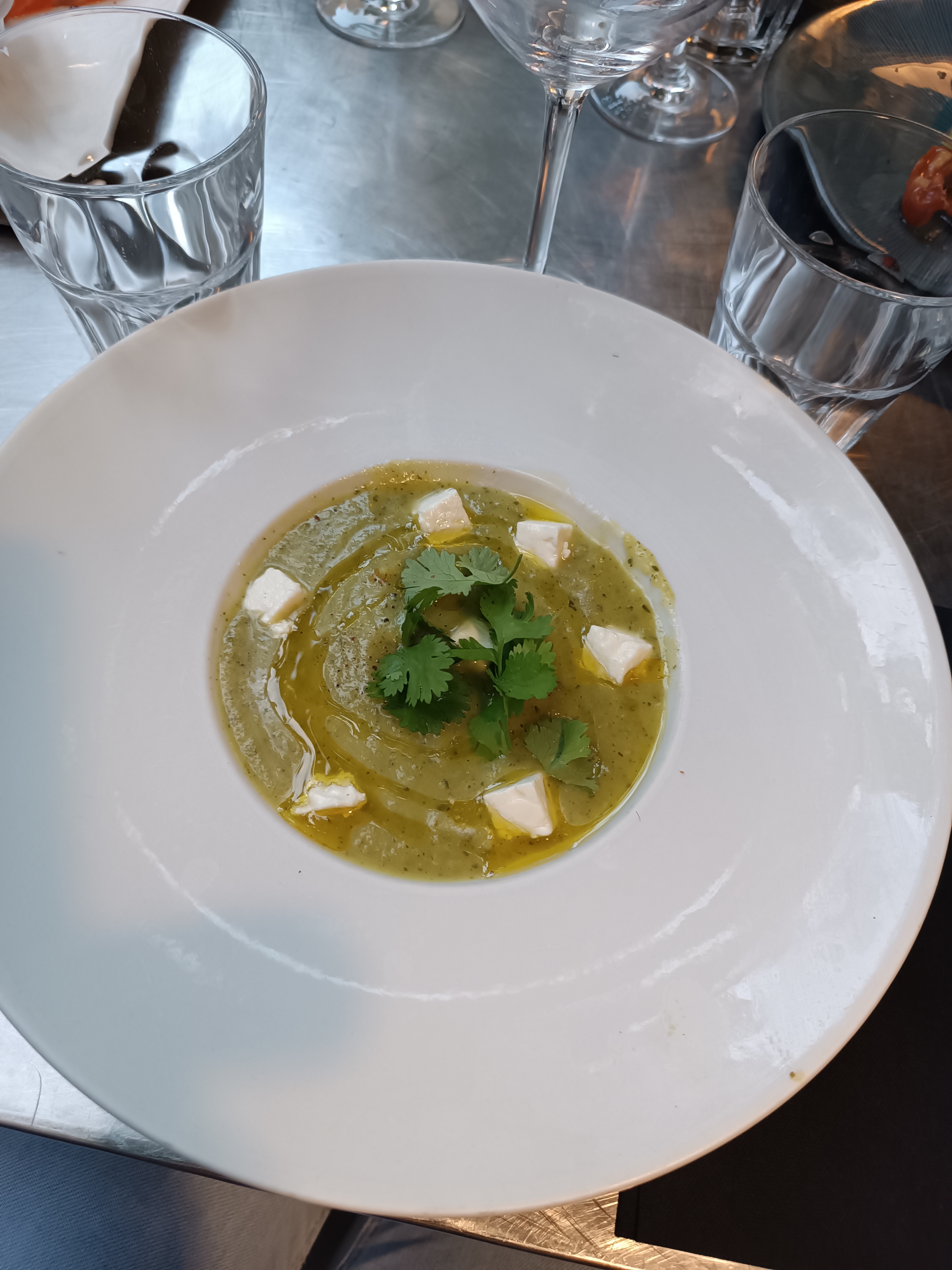 Terrasse et personnel charmants. Repas original et délicieux. 20 sur 20 notamment pour le st jacques lentilles !! Ne changez rien! Sauf peut-être l'huile d'olive légèrement amère lors des entrées (ça c'est pour faire le difficile).