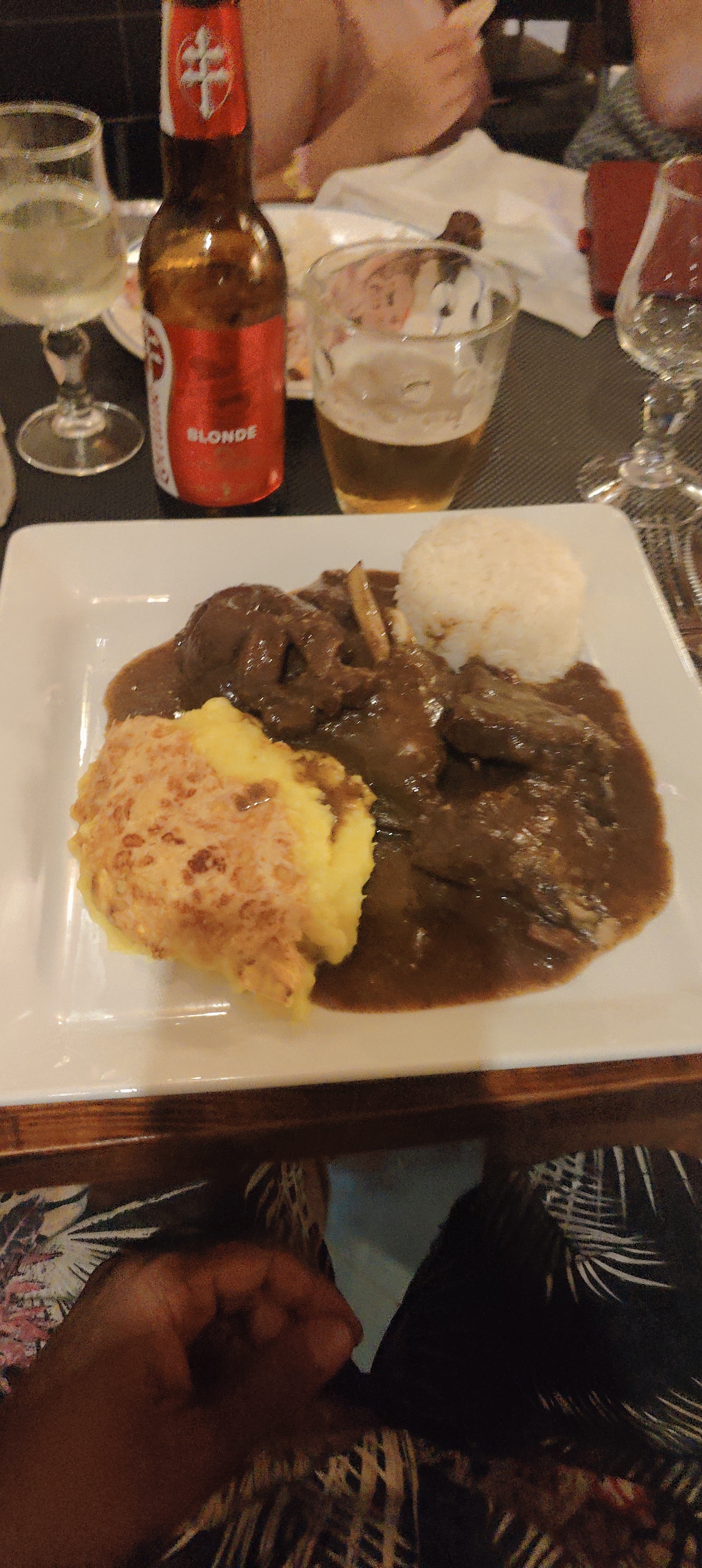 Bon restaurant mais ici on te fait bien comprendre que si t’es pas un habitué, tu vas attendre!! Nous avons pris un plat du jour à 28€ puis un cocktail et une bouteille d’eau. Plus de 2h pour: des accras, un filet mignon aux poivres et un mille feuilles revisité Le menu est bon mais trop long!!!! Un couple est arrivé pendant notre entrée et ils sont partis quand on nous servait seulement le dessert!! La table de 4 ont étés au petit soin par les patrons et nous on attends comme des c…!!! Bref bien dommage et c’est pas professionnel du tout. Je ne recommande pas malgré les belles assiettes Très déçu!