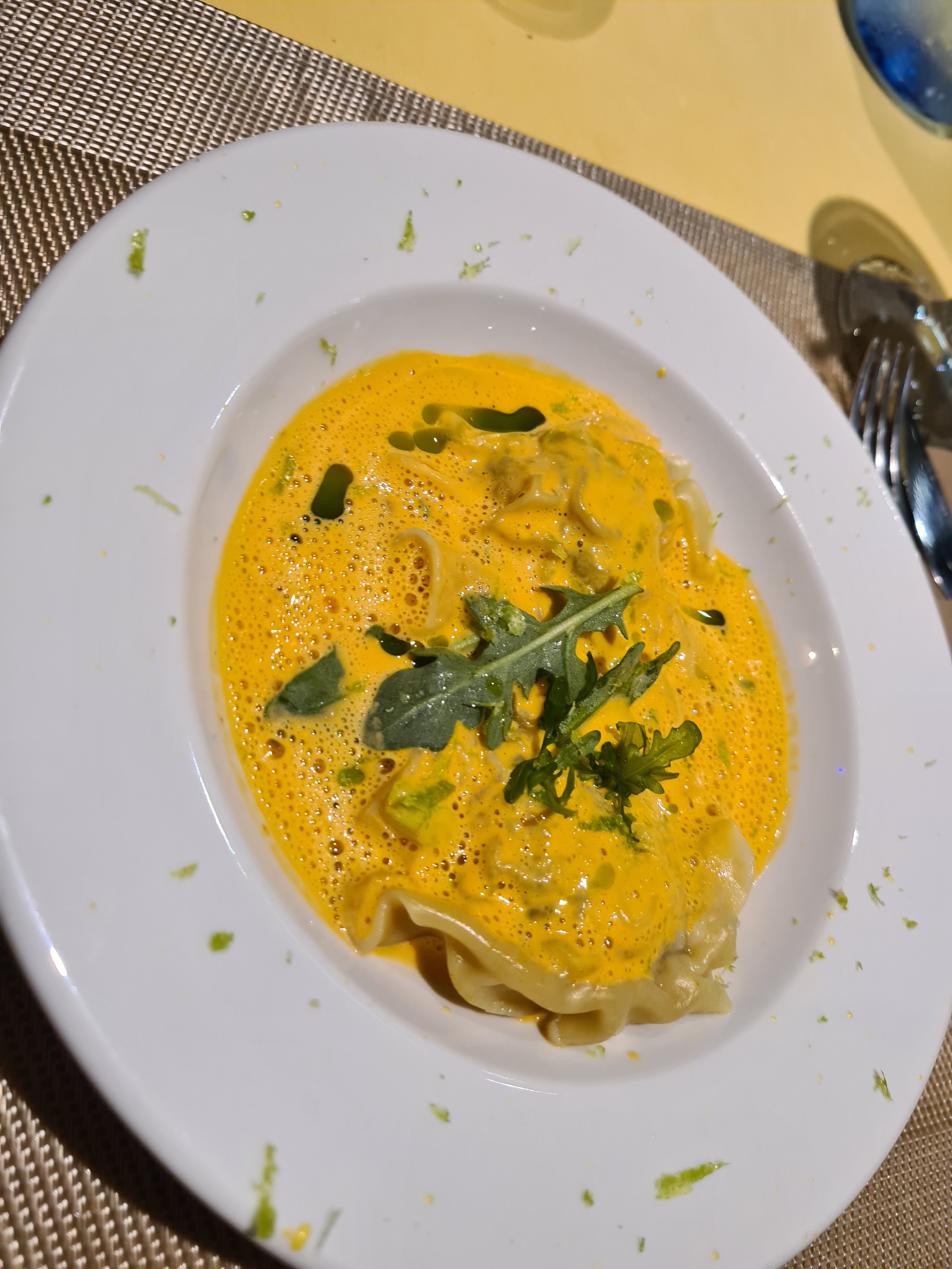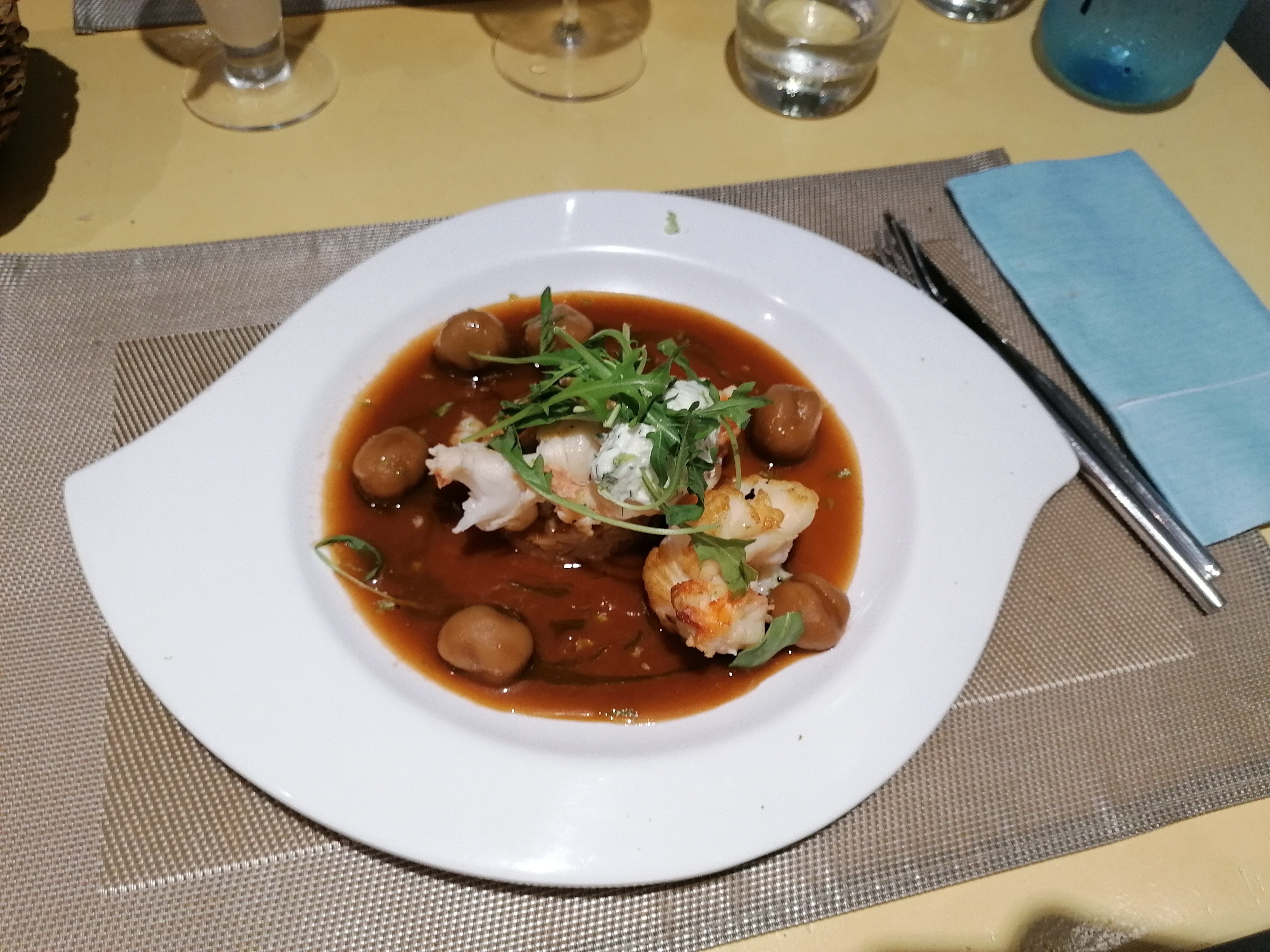 Accueil très sympa Si vous êtes dans le coin et que vous voulez mangez de la langouste n'hésitez pas Les ravioles sont un delice Nous étions 2 et avons pris le menu Très bon rapport qualité prix