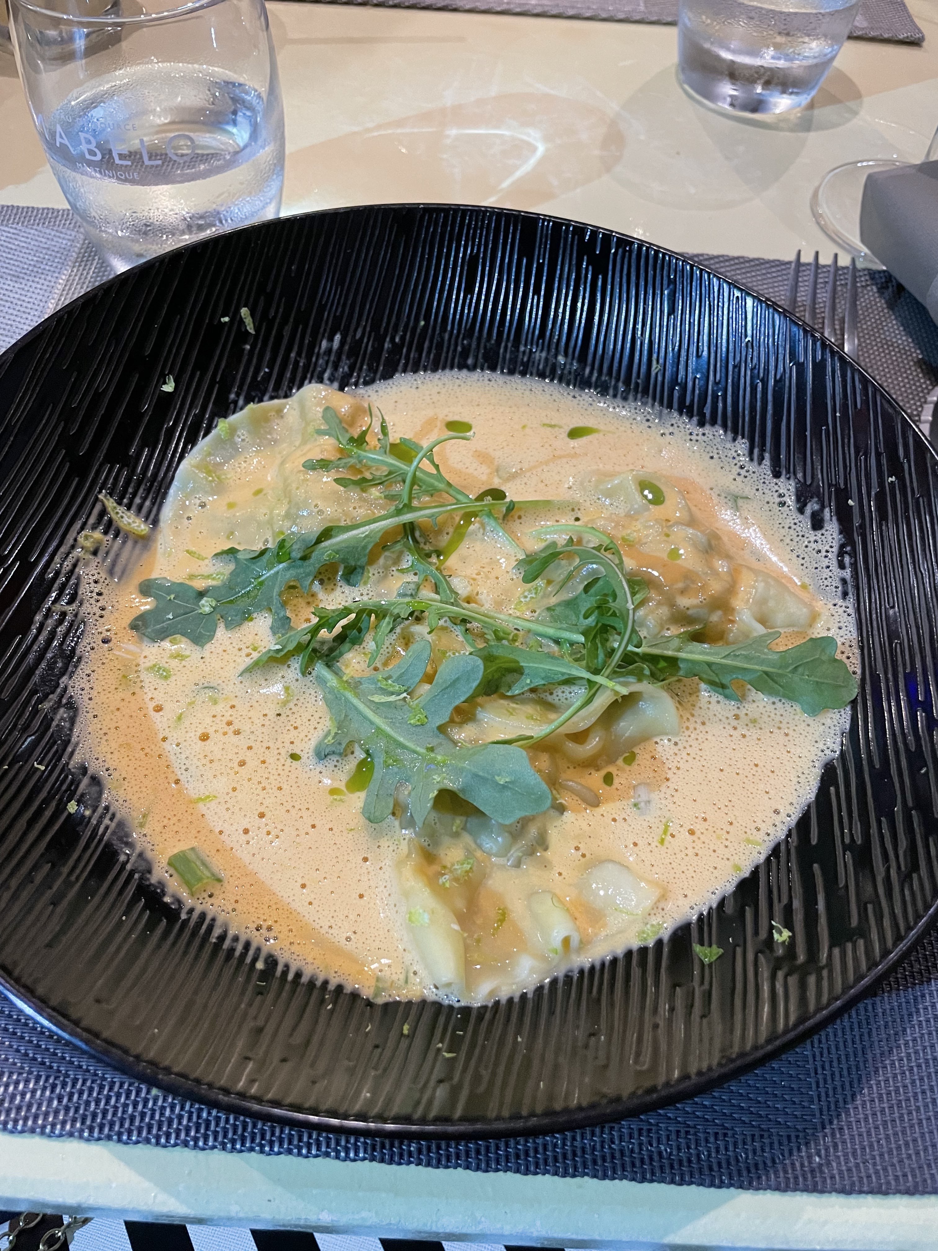 Restaurant en plein coeur de Sainte Luce avec une ambiance festive provenant de la rue. Délicieuses ravioles de langouste, suivi d'un plat savoureux. Copieux marlin sauce pesto d'herbes super bon, un délice ! Mention spéciale à la serveuse, qui a été adorable.